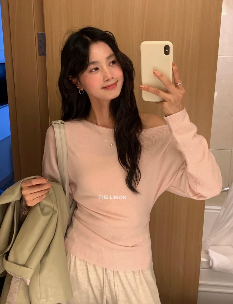 Off The Shoulder Knit Top Pullover Women Lightweight Thin Long Sleeve Plain Jumper Knitwear Autumn Winter Y2K Outfit