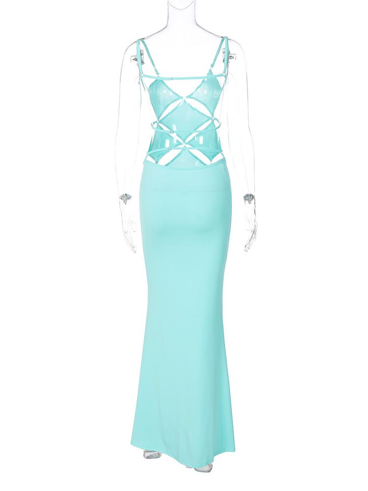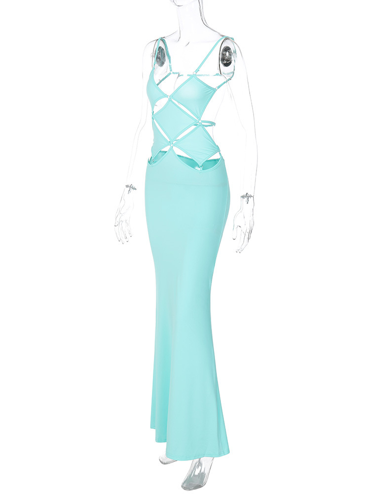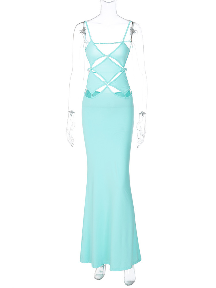 Elegant Black Hollow Out Slip Dress Sexy Summer Outfits for Women Sleeveless Backless Bodycon Maxi Evening Party Dresses