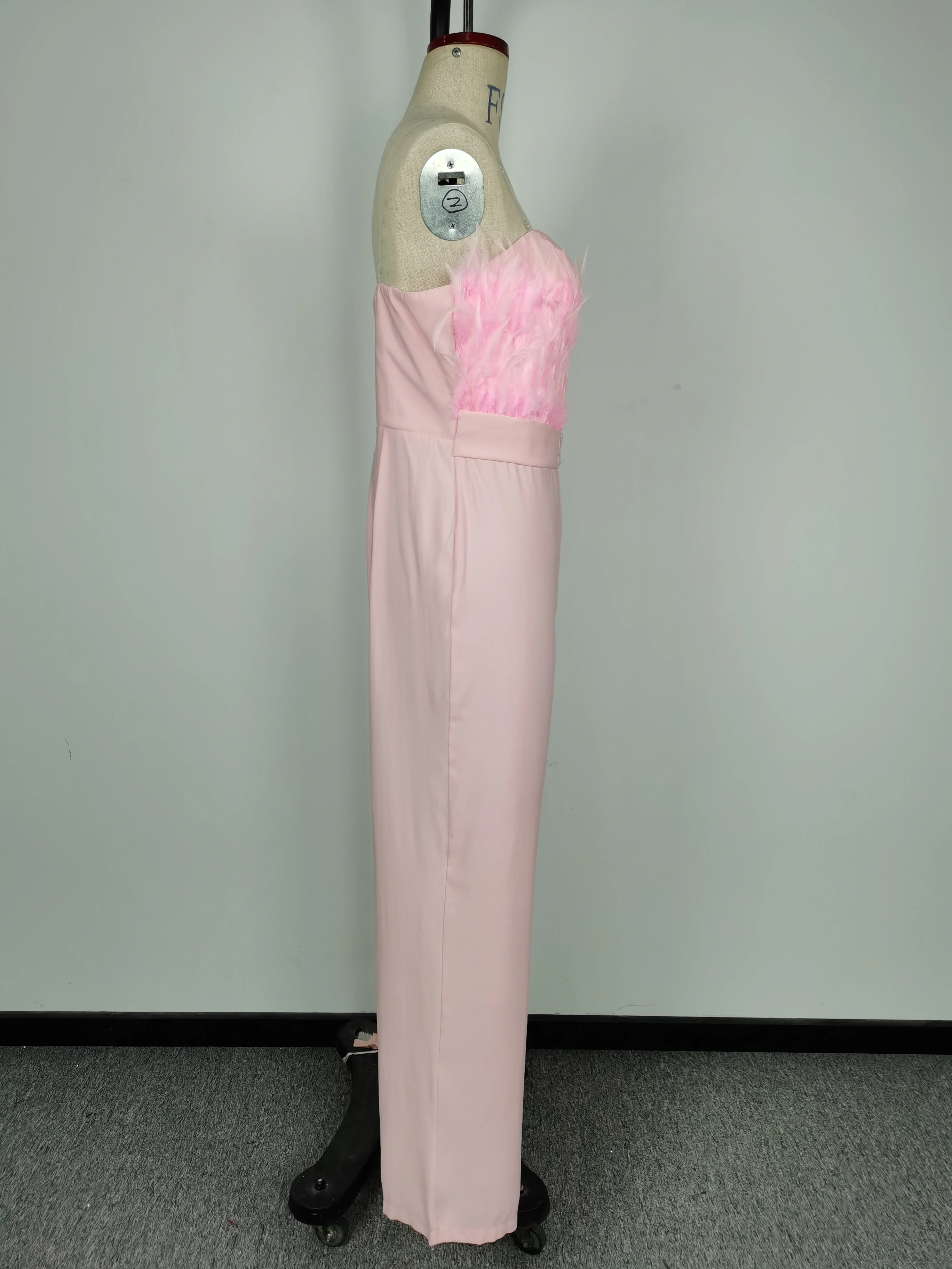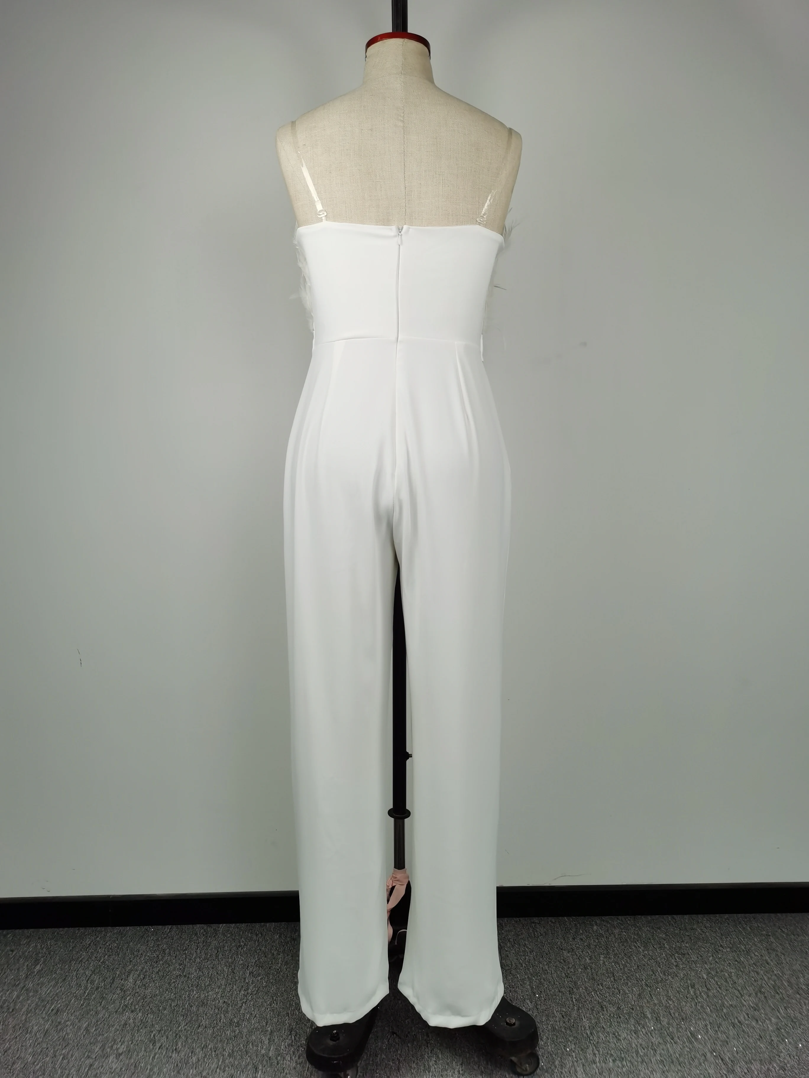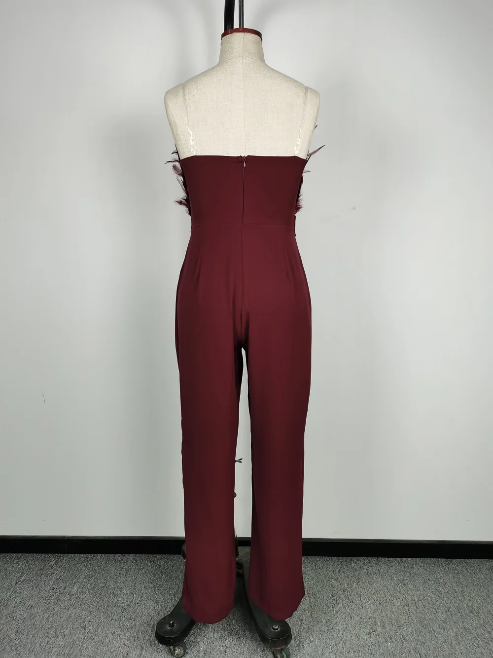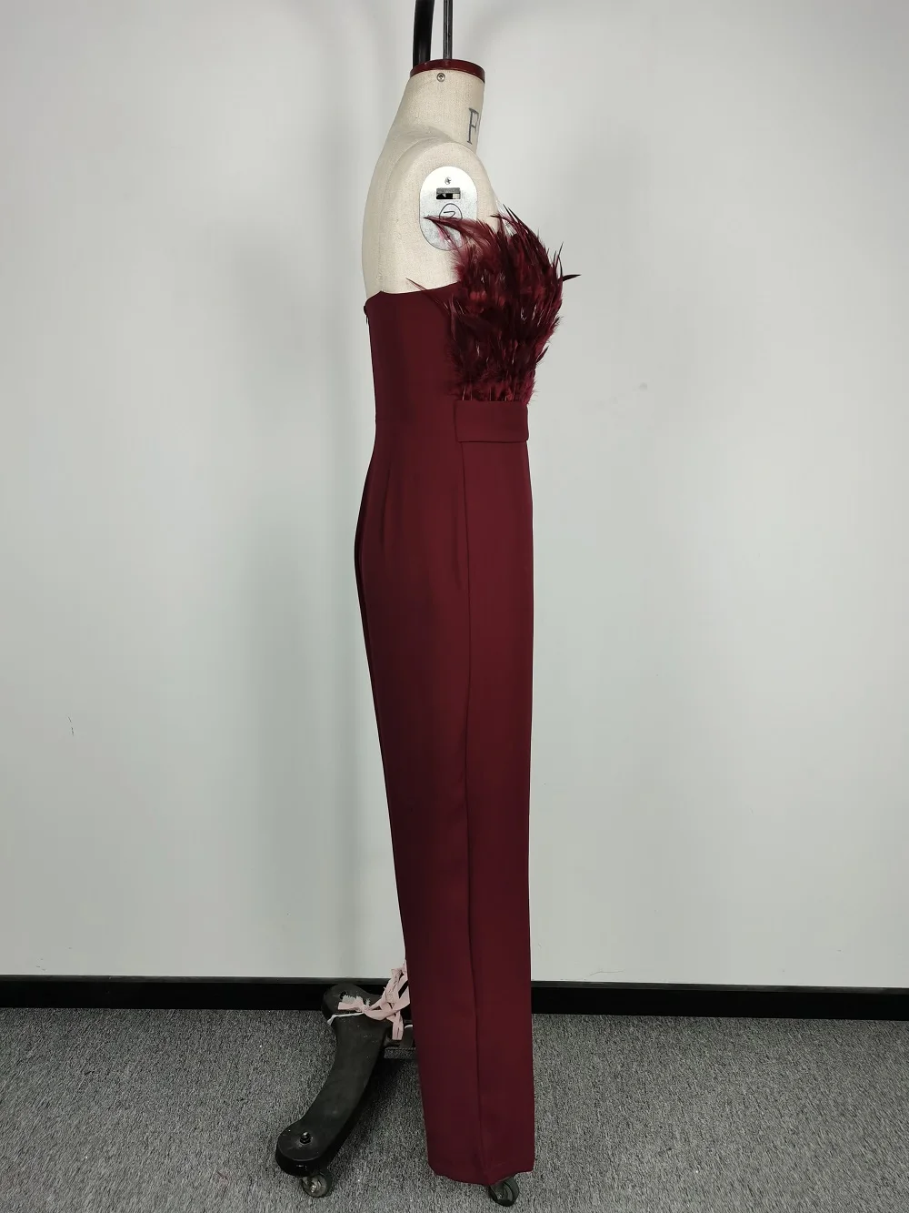 Feather Strapless Overalls for Women Party Evening Bodysuit Sleevelss Overalls Women's Clothing Traf Ropa Mujer Jumpsuits