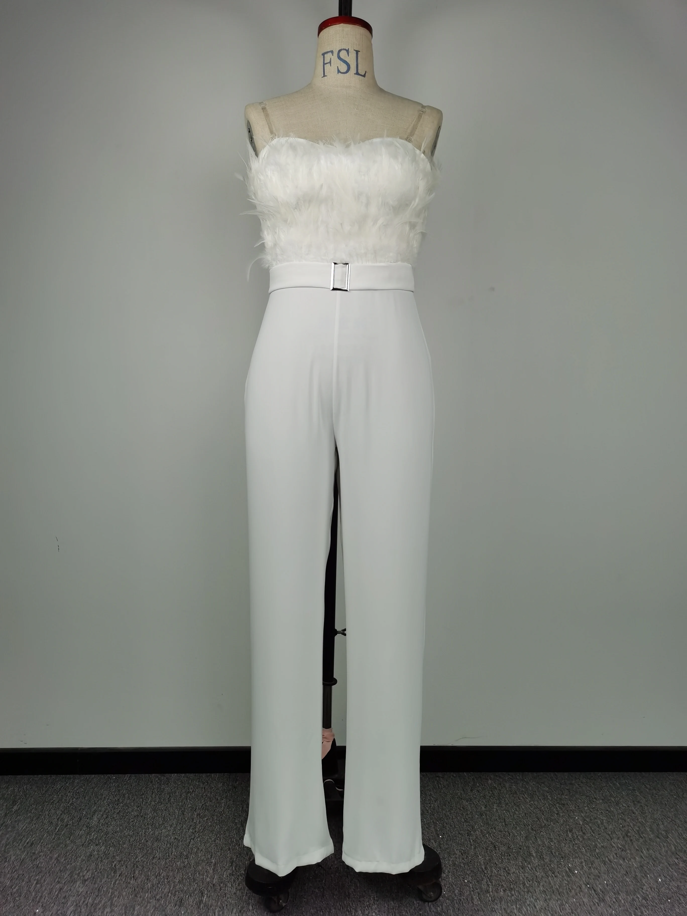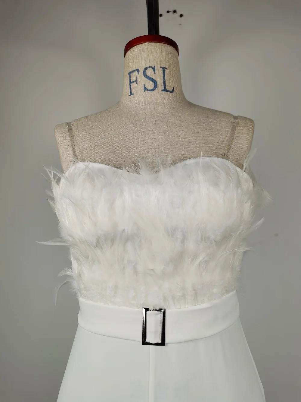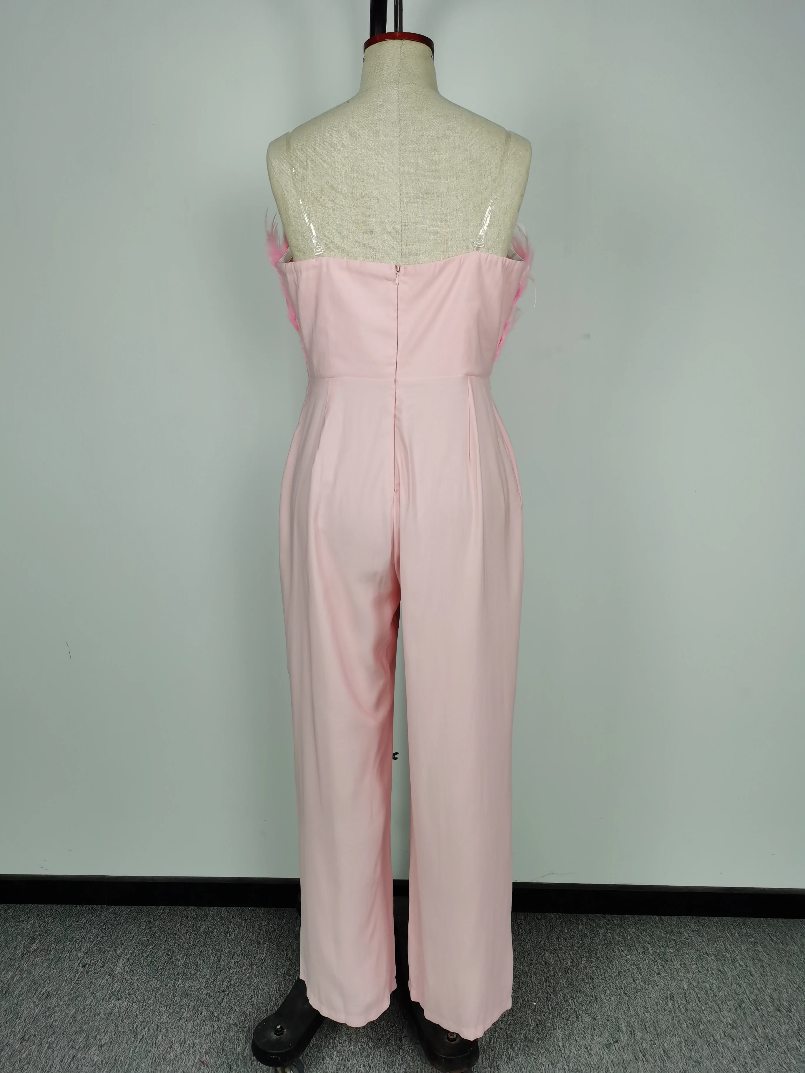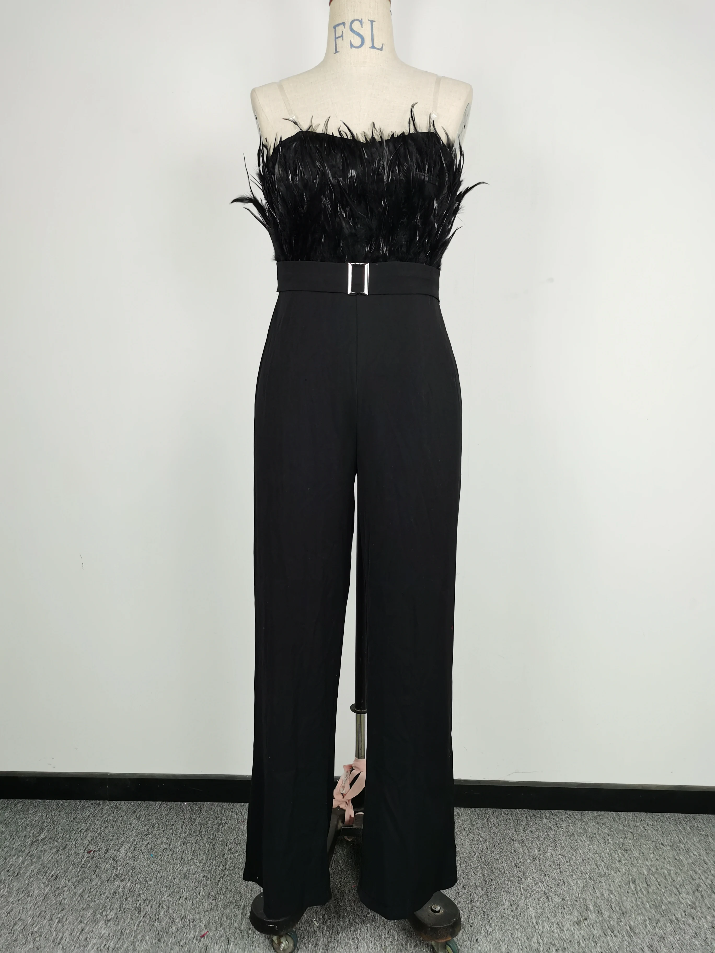 Feather Strapless Overalls for Women Party Evening Bodysuit Sleevelss Overalls Women's Clothing Traf Ropa Mujer Jumpsuits