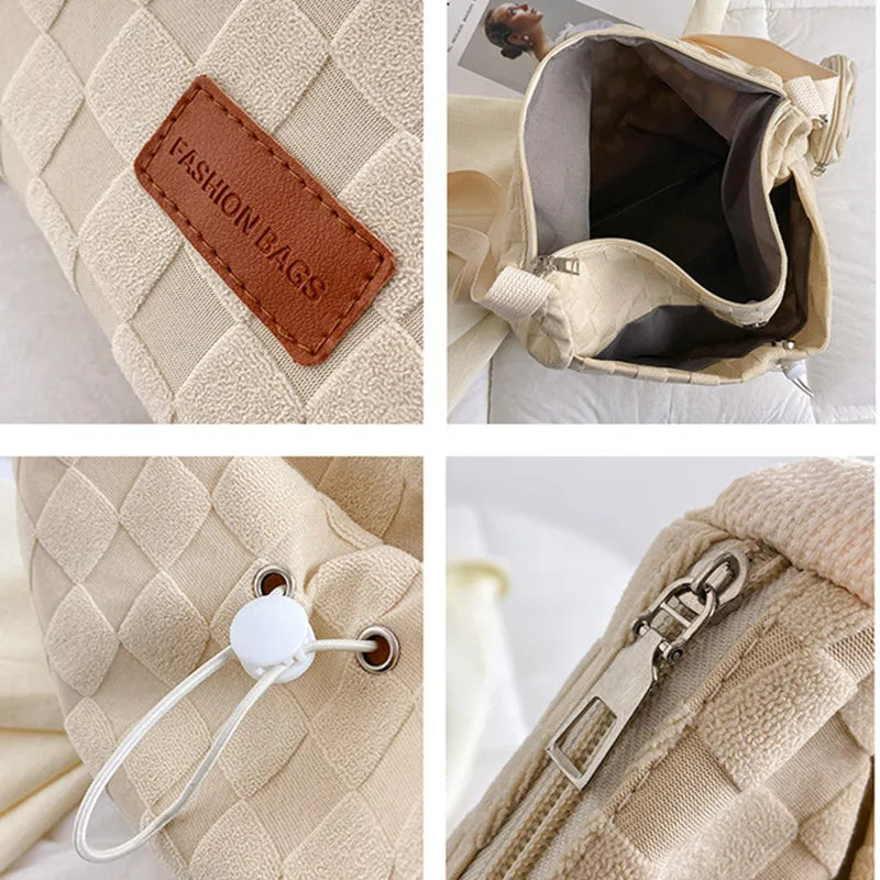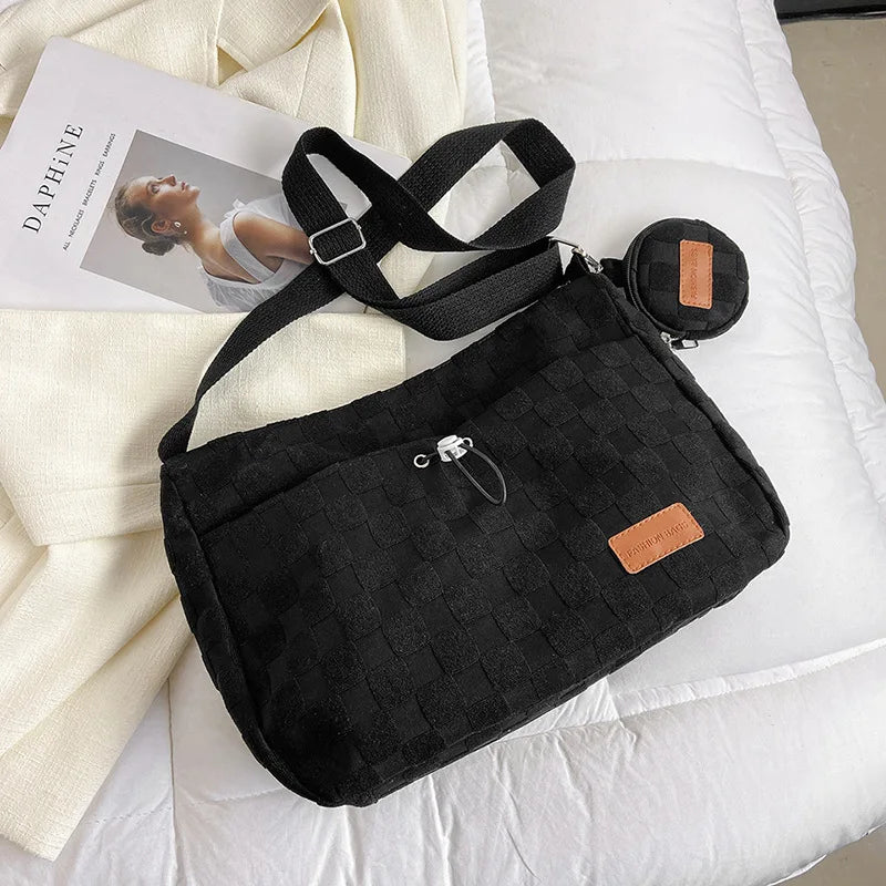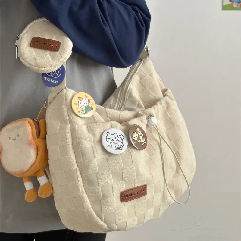 Harajuku Style College Crossbody Bag Solid Color Plaid Print Large Capacity Shoulder Bag New Cute Fashion Designer Handbag