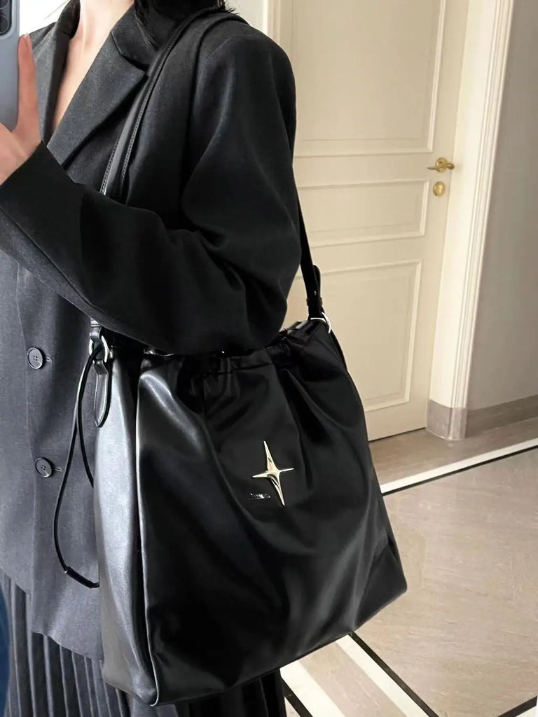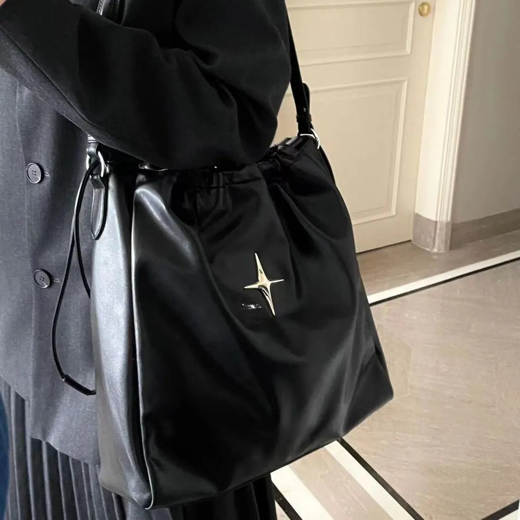 Korean Fashion Trendy Casual Tote Bags High-capacity Crossbody Drawstring Shoulder Bags Grunge Simple All Match Women Handbags