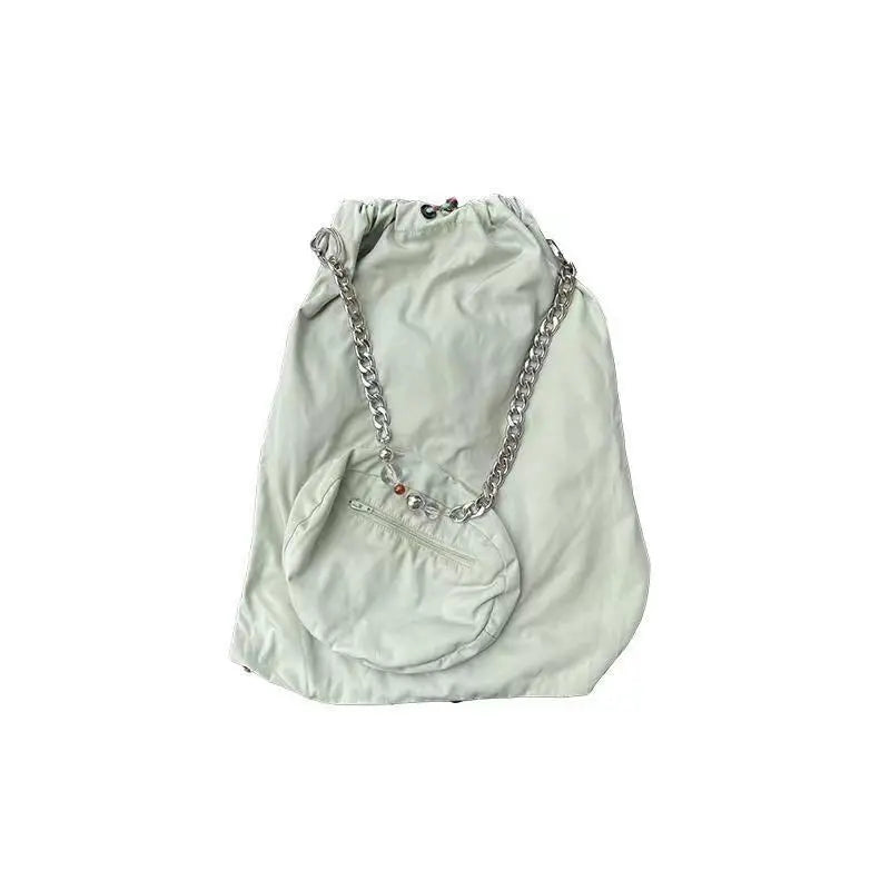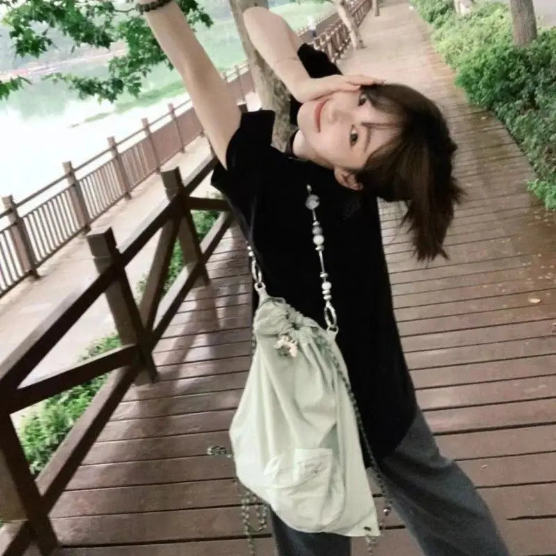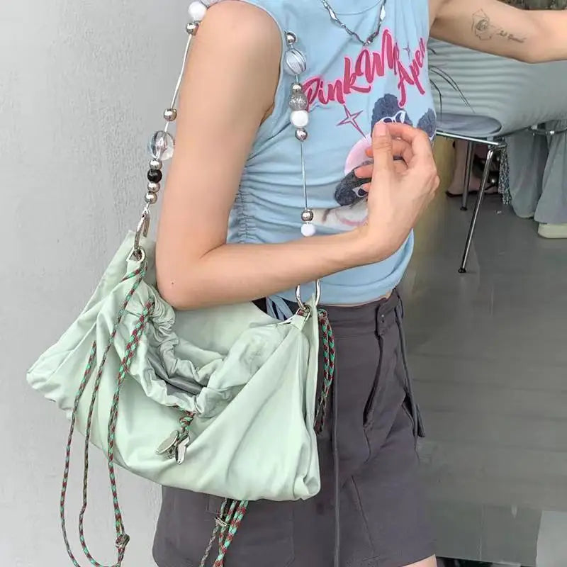 Korean Simple Y2k Chain Shoulder Bags Casual Beading All Match Crossbody Bag Preppy Drawstring Schoolbag Women Backpacks