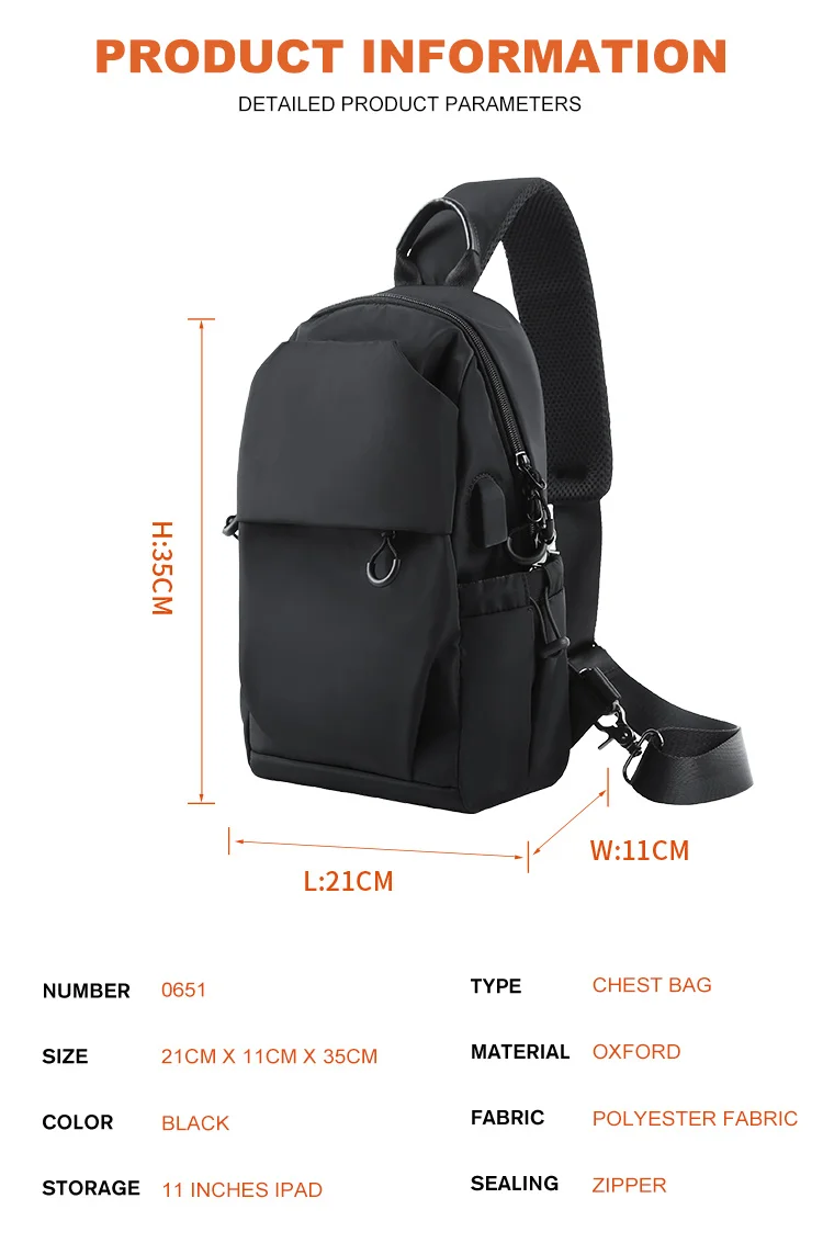 Men's Messenger Bag Shoulder Oxford Cloth Chest Bags Crossbody Casual Crossbody Bags Man Waterproof Chest Bag Anti Theft Mochila