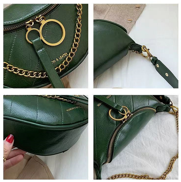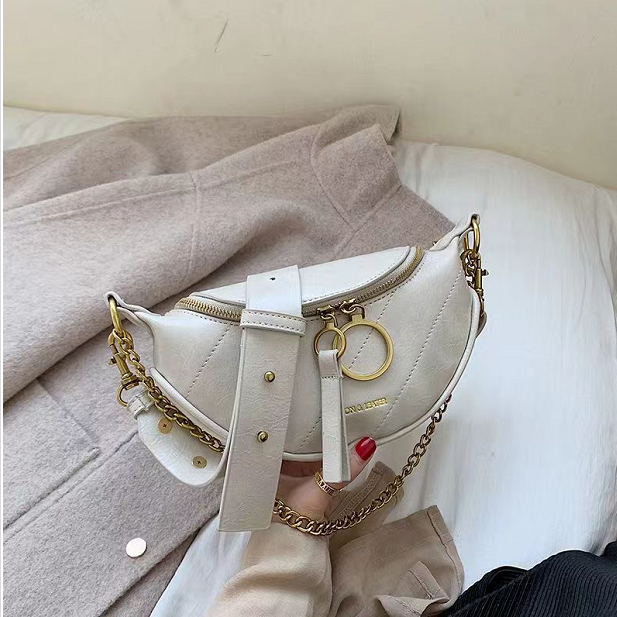 New Messenger Bag Women Hobos Letter Chains Single Shoulder Chest PU Leather Handbag Wide Straps Day Clutches Bolsas Femenina