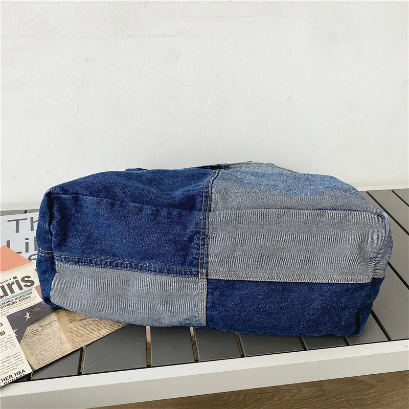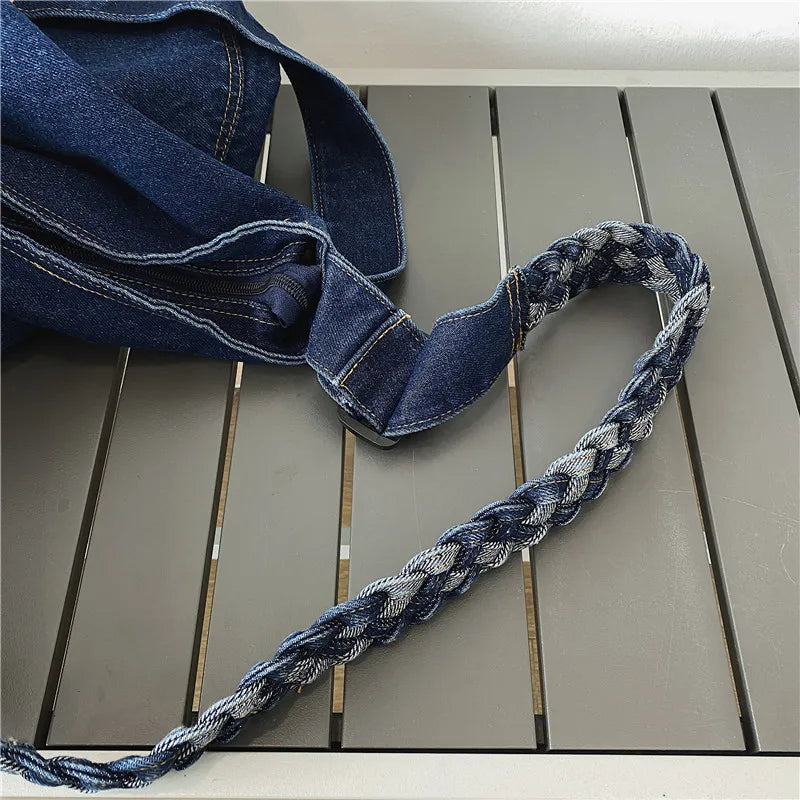 Oversized Patchwork Tote Bags For Women Latest Trend Shoulder Crossbody Bag Braided Strap Denim Fabric Big Capacity Shopper