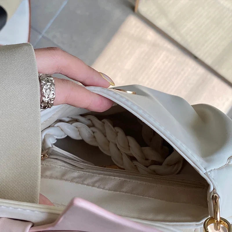 Sweet Bowknot Women Shoulder Bag Braided Strap Ladies Cute Underarm Bags Pleated PU Leather Female Purse Handbags Crossbody Bag