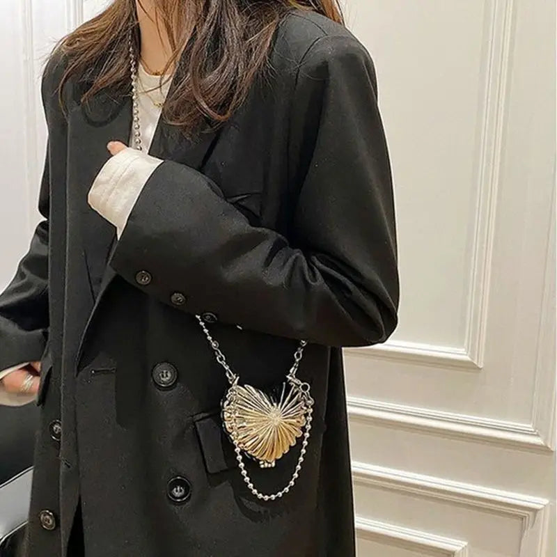 Women Shoulder Bags Design Sense Mini Metal Heart Bag Chain Handbag Niche Crossbody Bag for Women Purses and Handbags