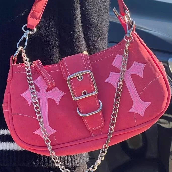 Y2K Sweet Cool Girls Underarm Bag Fashion Women's Pink Shoulder Crossbody Bags Retro Chain Female Clutch Tote Purse Handbags