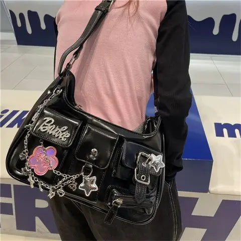 Y2k Vintage Streetwear Shoulder Bag Gothic Punk Harajuku Cross Chain Women's Handbags Trendy Pockets All Match Crossbody Bags