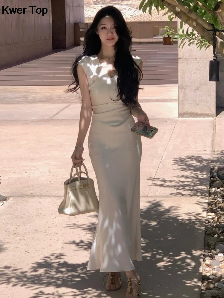 Summer Fashion Elegant Women Sleeveless Solid Chic Bodycon Birthday Vestidos Female Vintage Clothes New