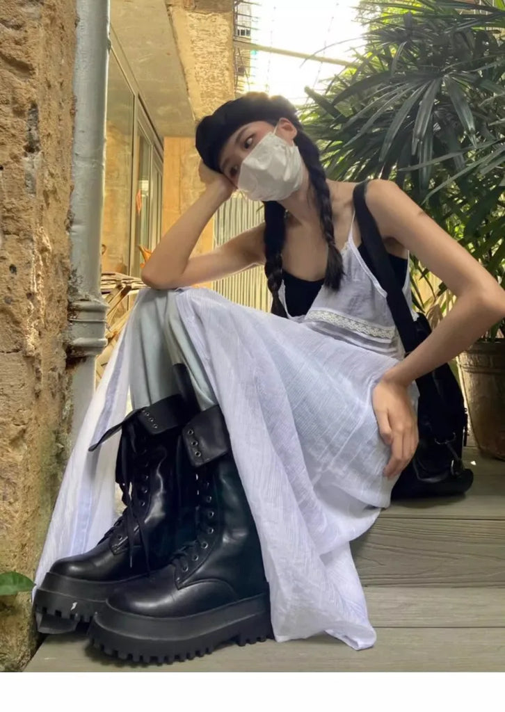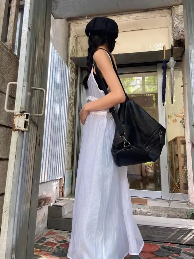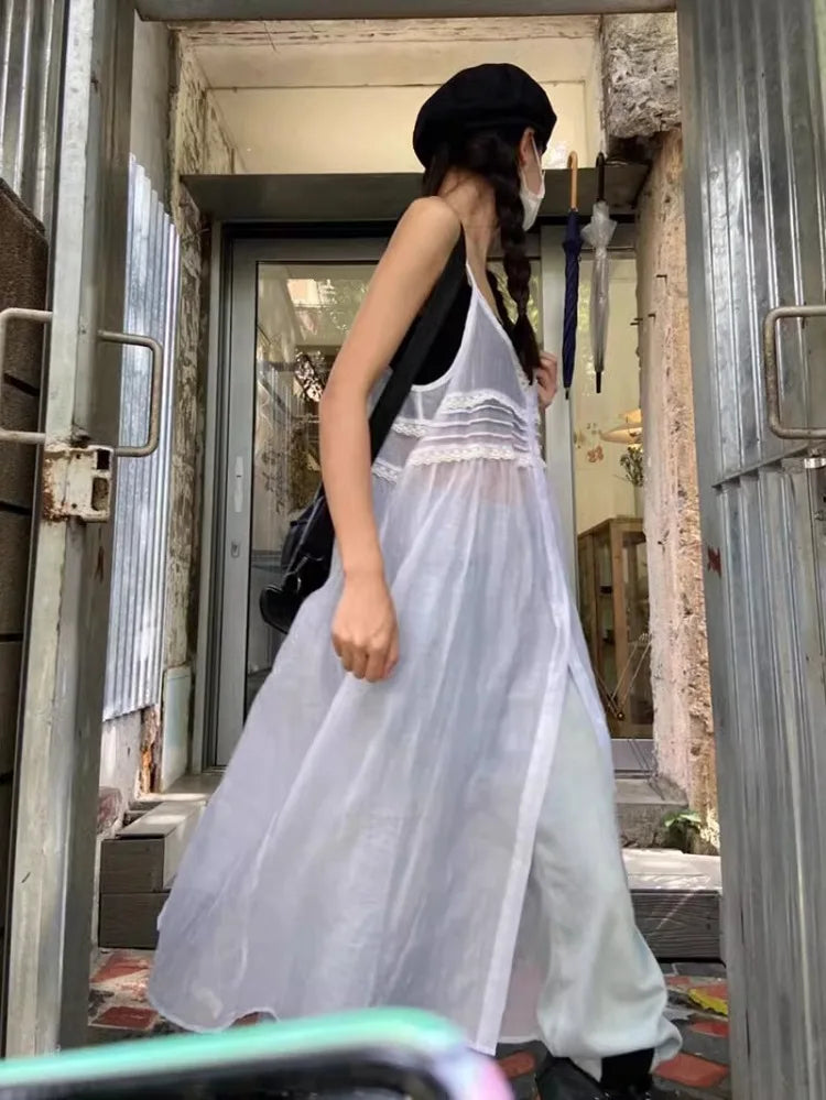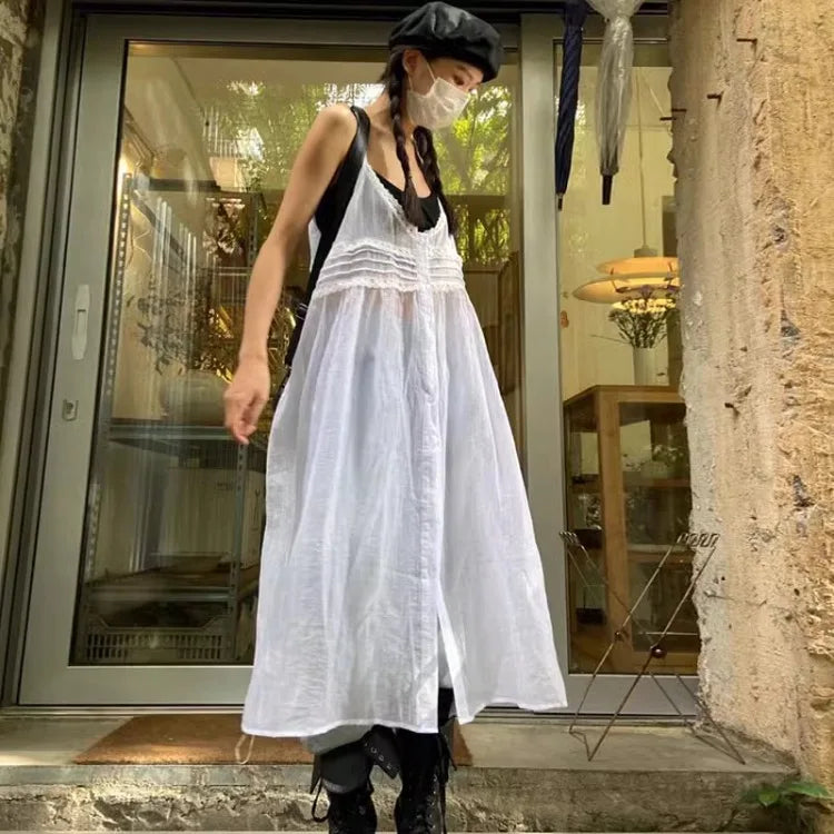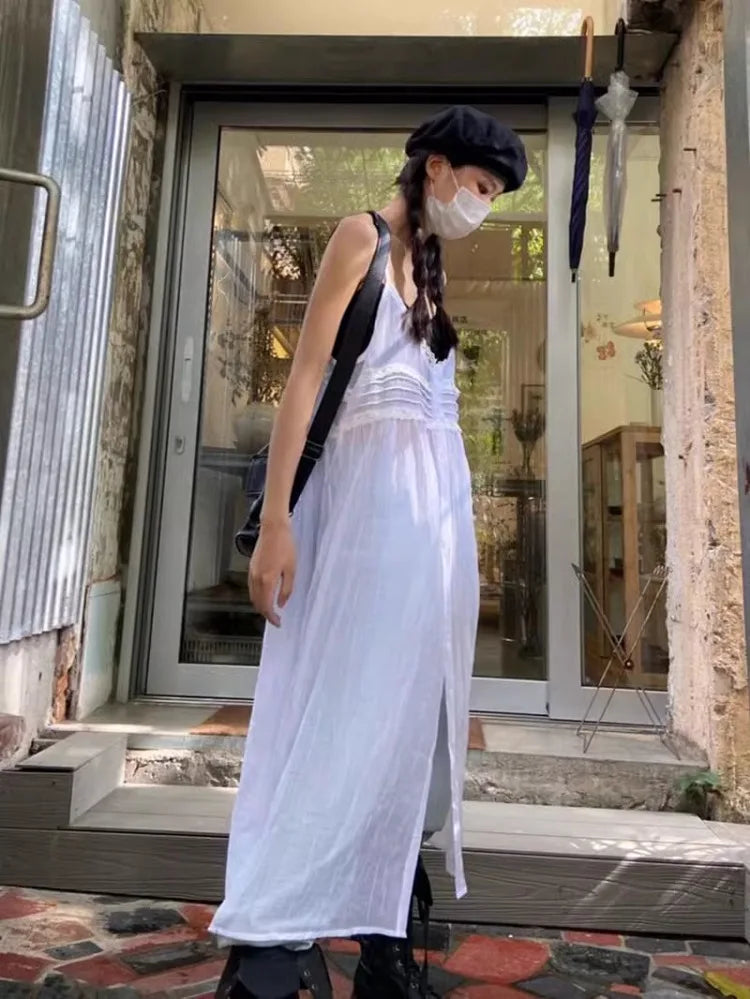 Y2k Fairycore White Camisole Dress for Women Mid-length Loose Vestidos Mujer Summer New V-neck Thin Dresses
