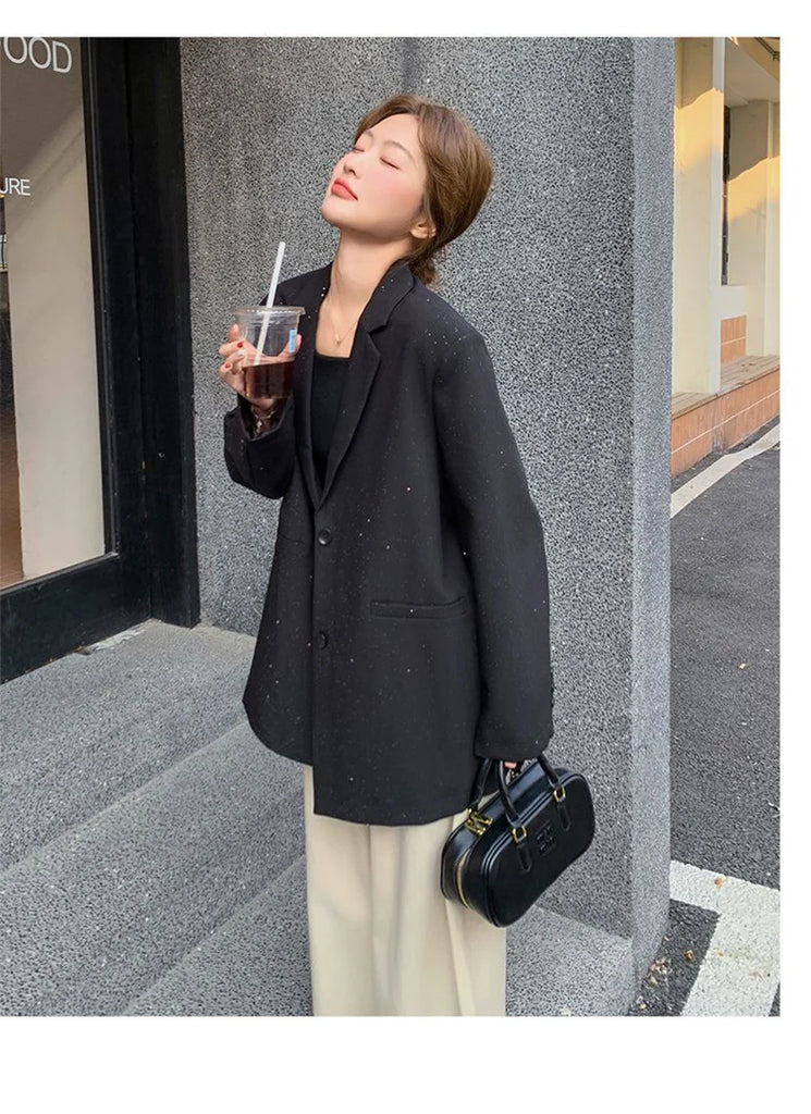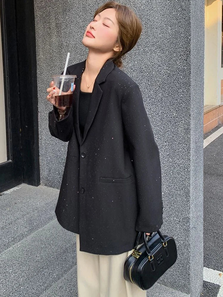 Elegant Black Blazer Women Fashion Sweet Long Sleeve Design Suit Coat Korean Casual Chic Female Fall Winter Sweet Jacket
