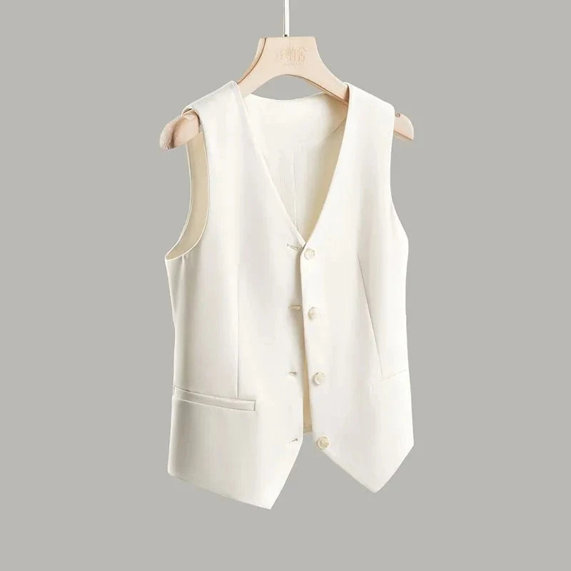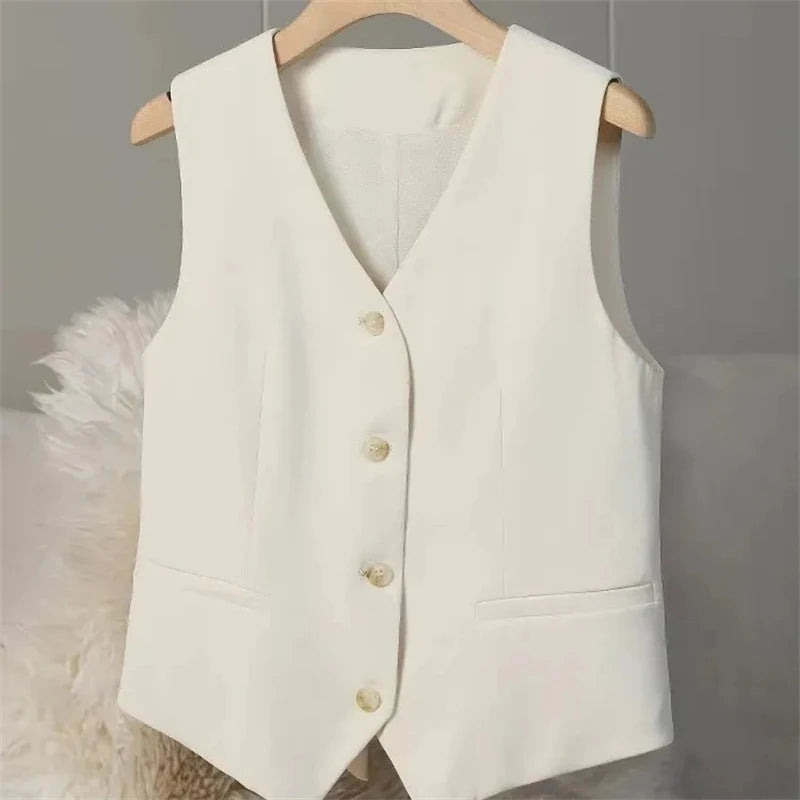 Women's Vest Coat 2025 Spring Autumn High-end Sleeveless Ladies Suit Vest Jacket Temperament Fashion Lady Blazer Horse Clip