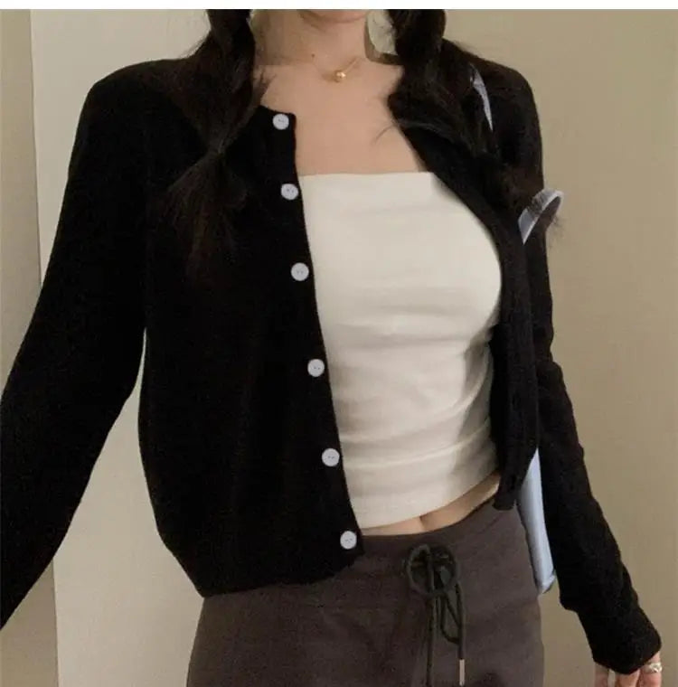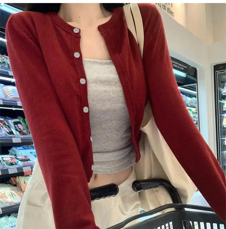 Alobee Red Cardigan Knit Early Autumn Women Clothes New 2024 Outdoor Crop Sweater Outerwear Long Sleeve Top Bottoming Shirt