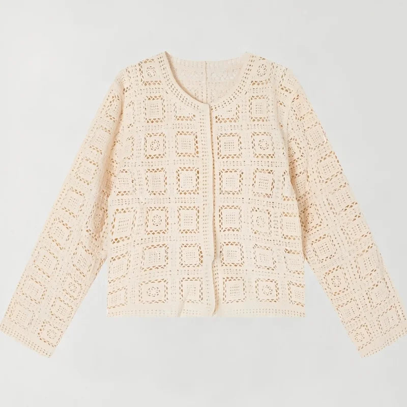 Crochet Cardigan for Women Sheer Openwork Button Front Pointelle Knit Jacket Tops Blouse French Chic Boho Vacation Outfit