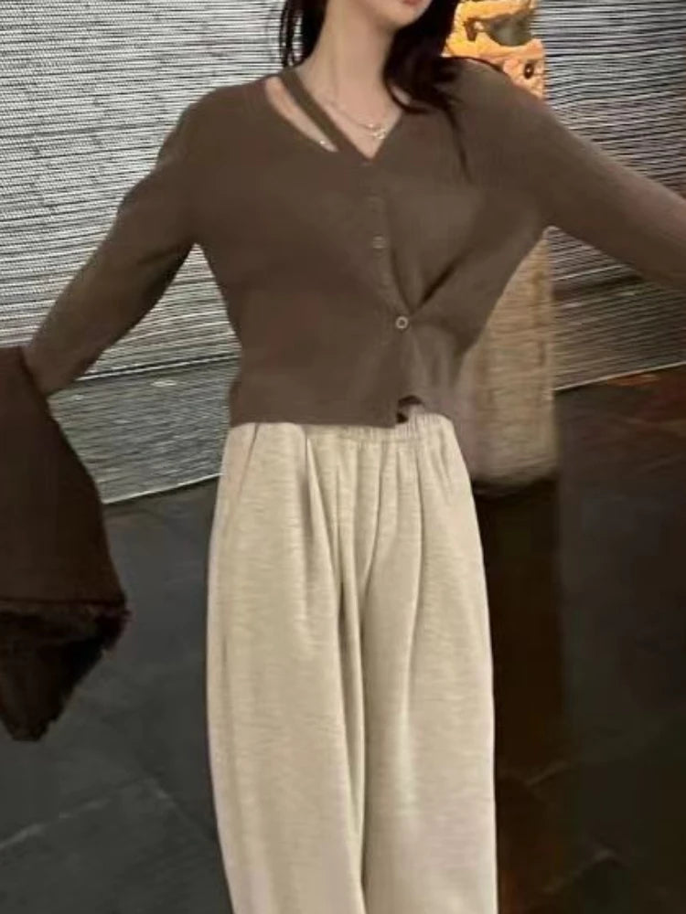 Cut Out Cardigan for Women Soft Knit Long Sleeve Button Down Rib-Knit Sweater Jacket Teen-girl Autumn Winter Y2K Outfit