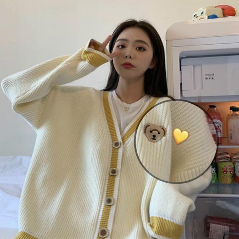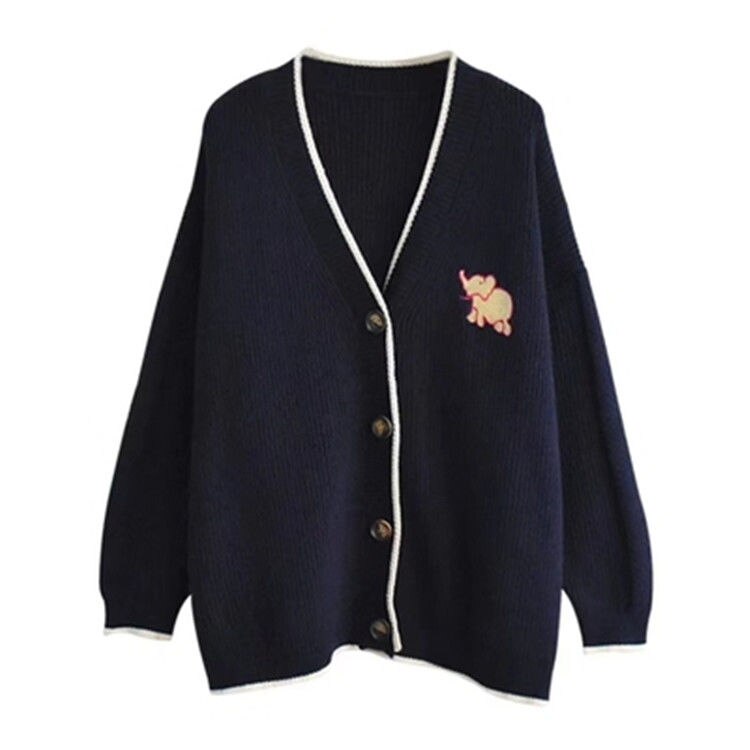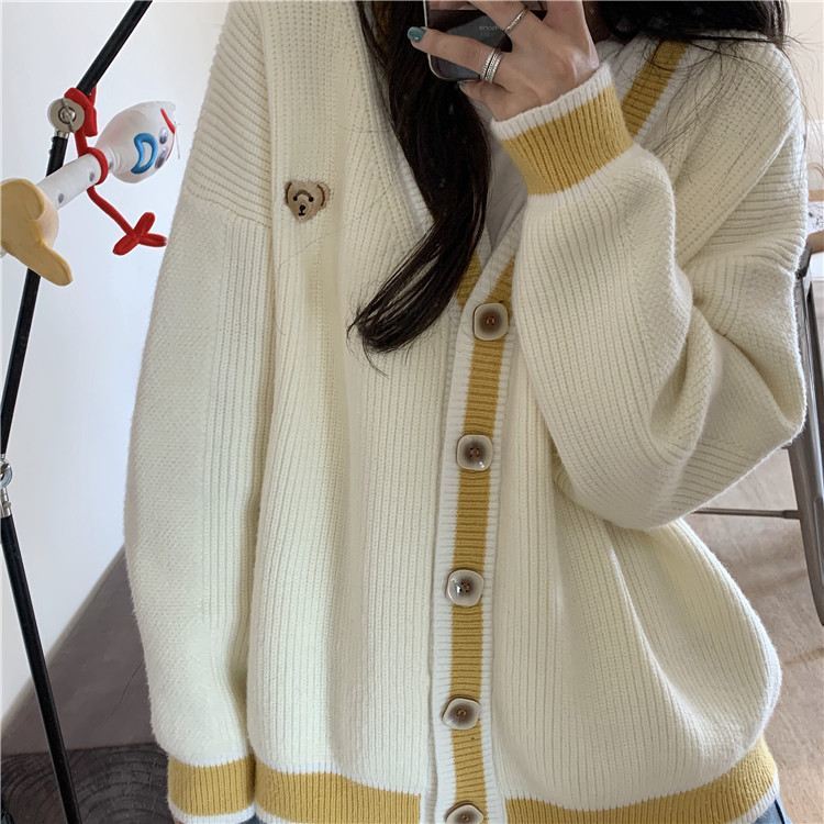 Sweet Korean style All-match Sweater Coat Students Chic Womens Cardigan Women V-neck Cartoon Embroidery Kawaii Harajuku Lovely