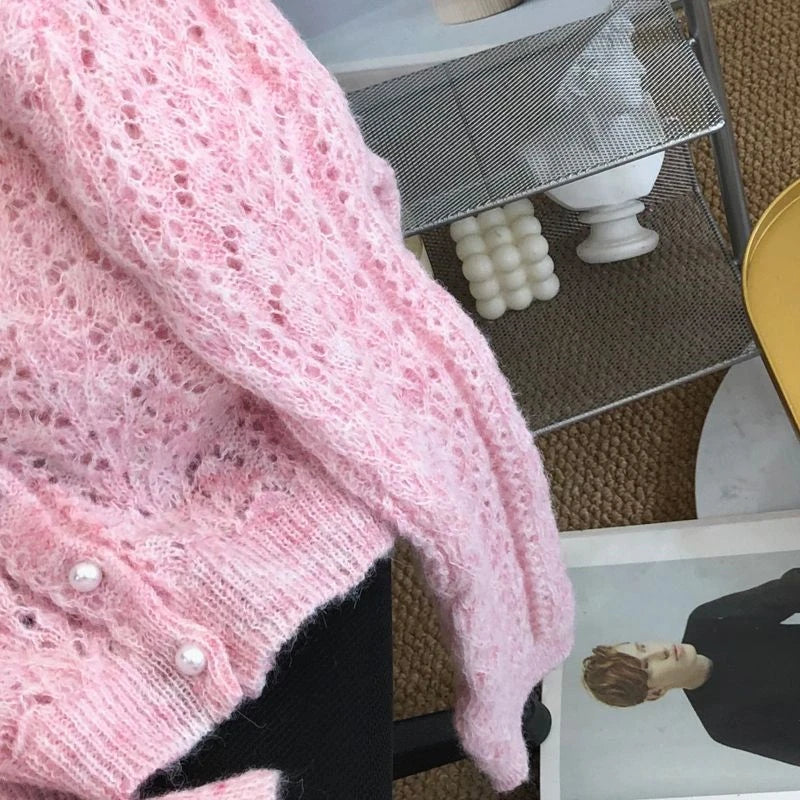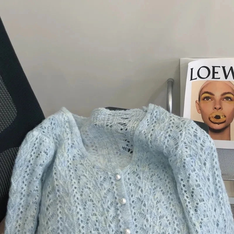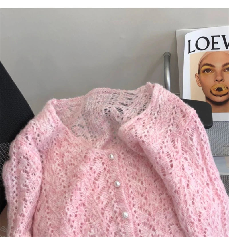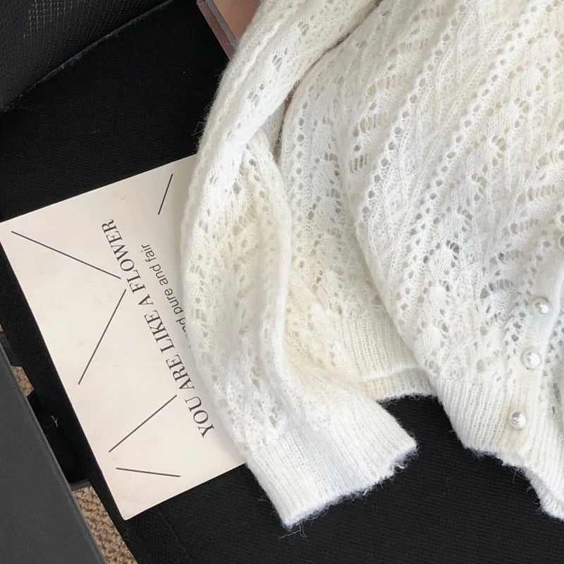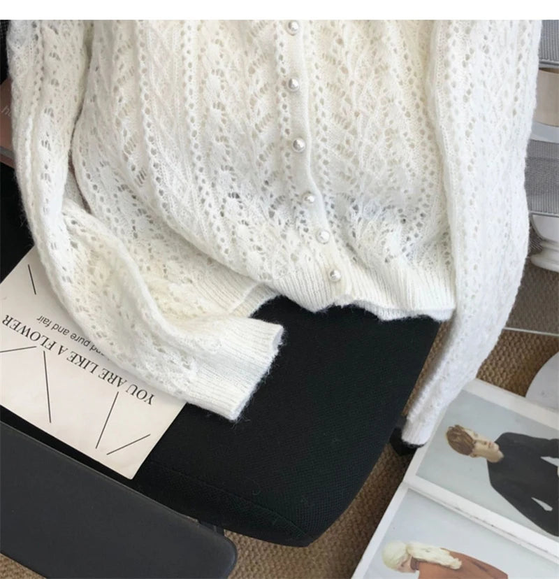 Women Knitted Cardigan Sweater Jacket Fashion Spring Autumn 2024 New Versatile Leisure Thin Style Hollowing Out Ladies Top Coat