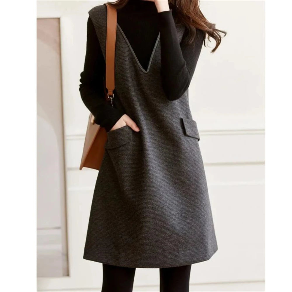 Party Vestidos Straigh Women'S Clothing Spring Beaded Tank V-neck Woolen Dress Winter Casual Hot Sale Women Wool Dress