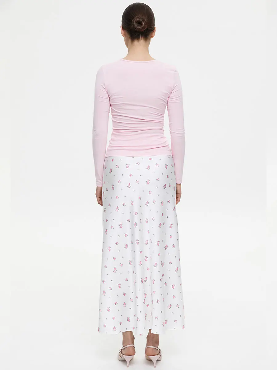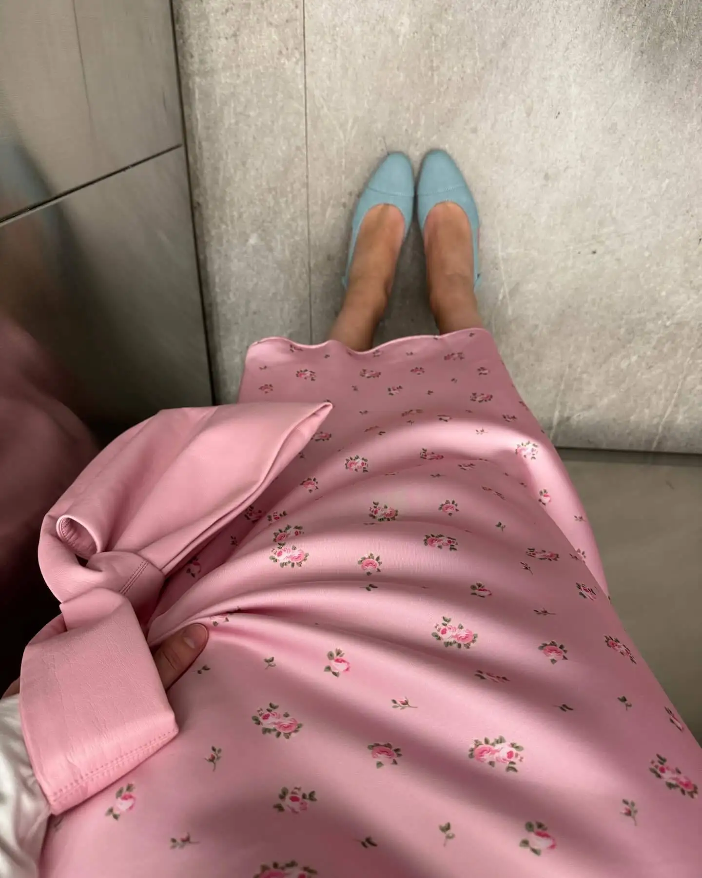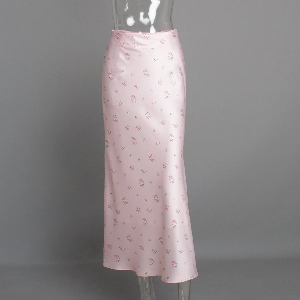 2025 Summer Floral Printed Pink Long Skirt For Women Casual High Waist Slim Elegant Party Maxi Skirt Female Stain Dress Clothes