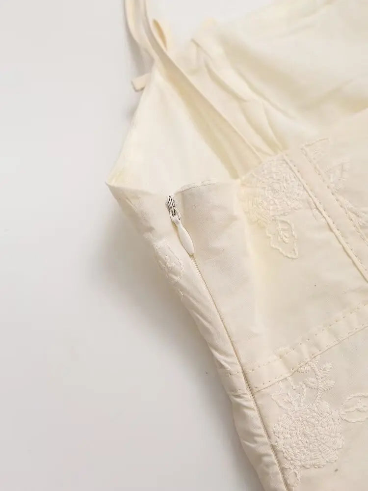 Solid Beige Plaid Embroidery Short Dress Sleeveless Sqaure Collar Casual Bow Women Dress 2025 New Sweet Chic Summer Vestidos