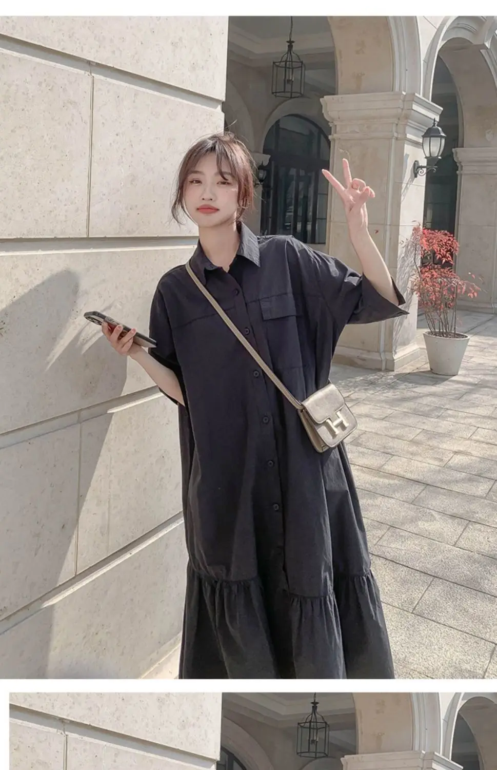 Summer Elegant Dress for Women Fashion Solid Collar Single Breasted Casual Shirt Skirt Robe Streetwear Oversize Female Dresses