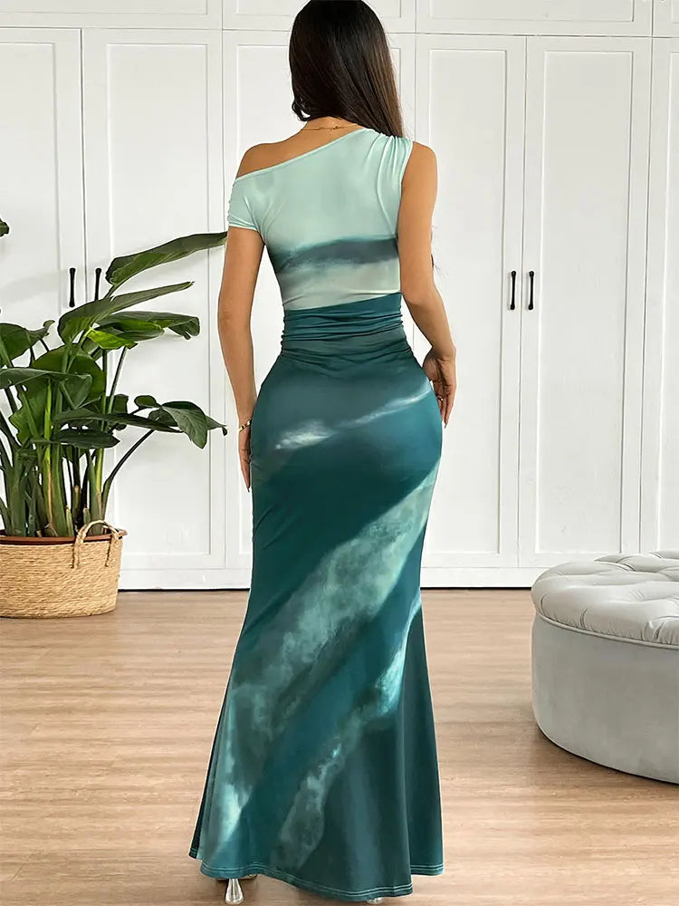 Summer Women's Dresses New Streetwear Fashion Tie Dye Split Maxi Dresses Elegant Female Sexy Casual Slim Knitted Dress Clothing