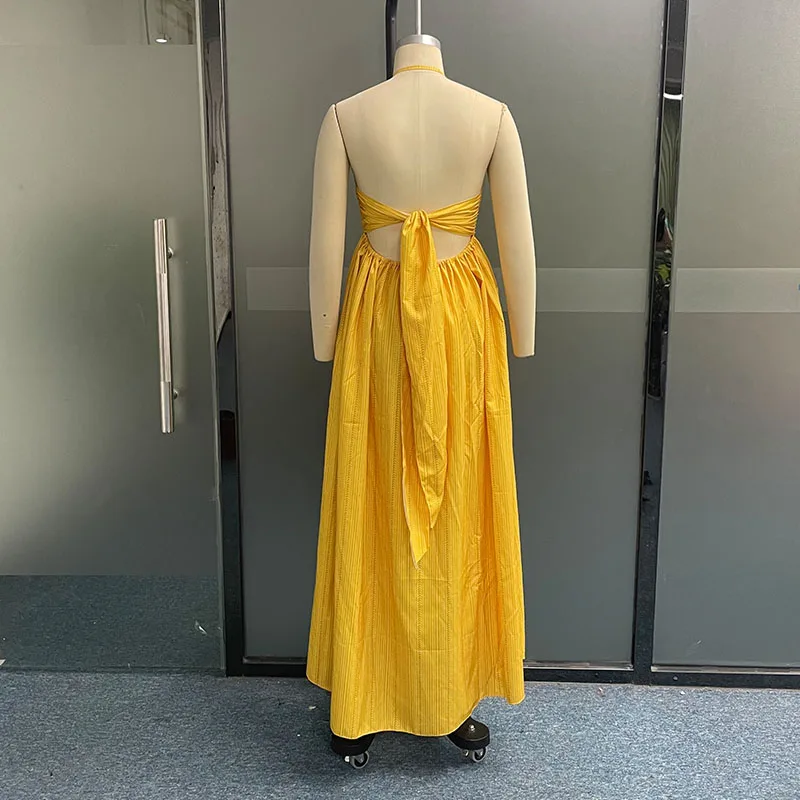 Women Maxi Dress Summer Casual Printed Halter Sleeveless V Neck Lace Up Backless Beach Loose Dresses High Streetwear