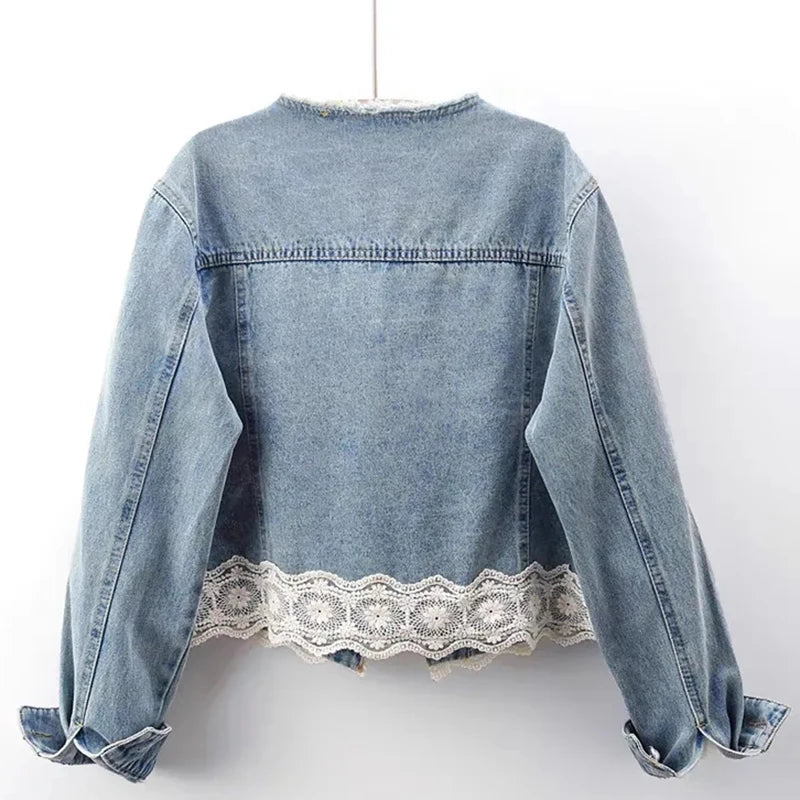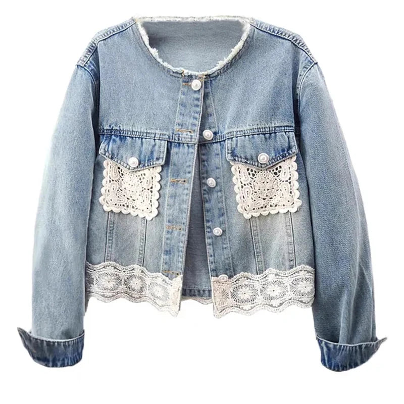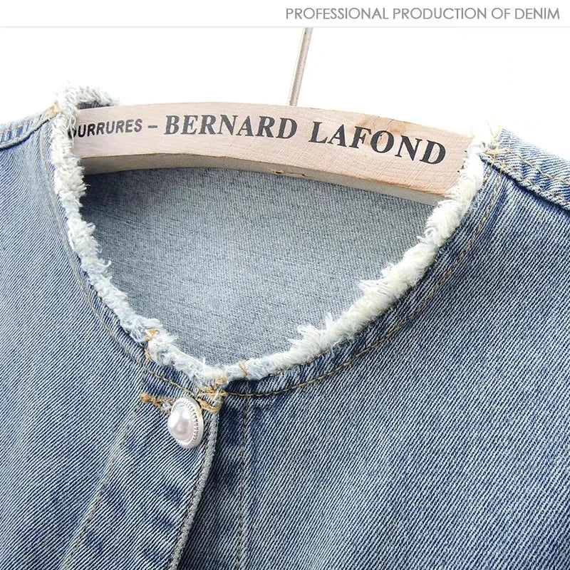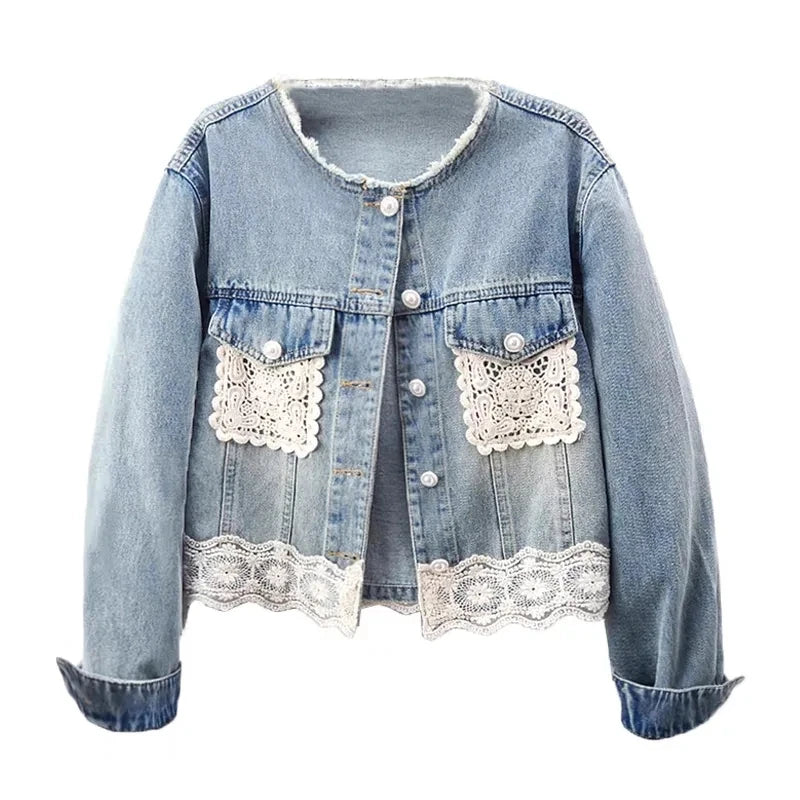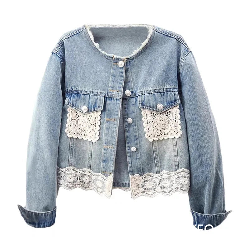 Women's Denim Jacket 2025 Spring Autumn Korean Version High-grade Lady Outerwear Round Neck Long-sleeve Ladies Short Cowboy Coat