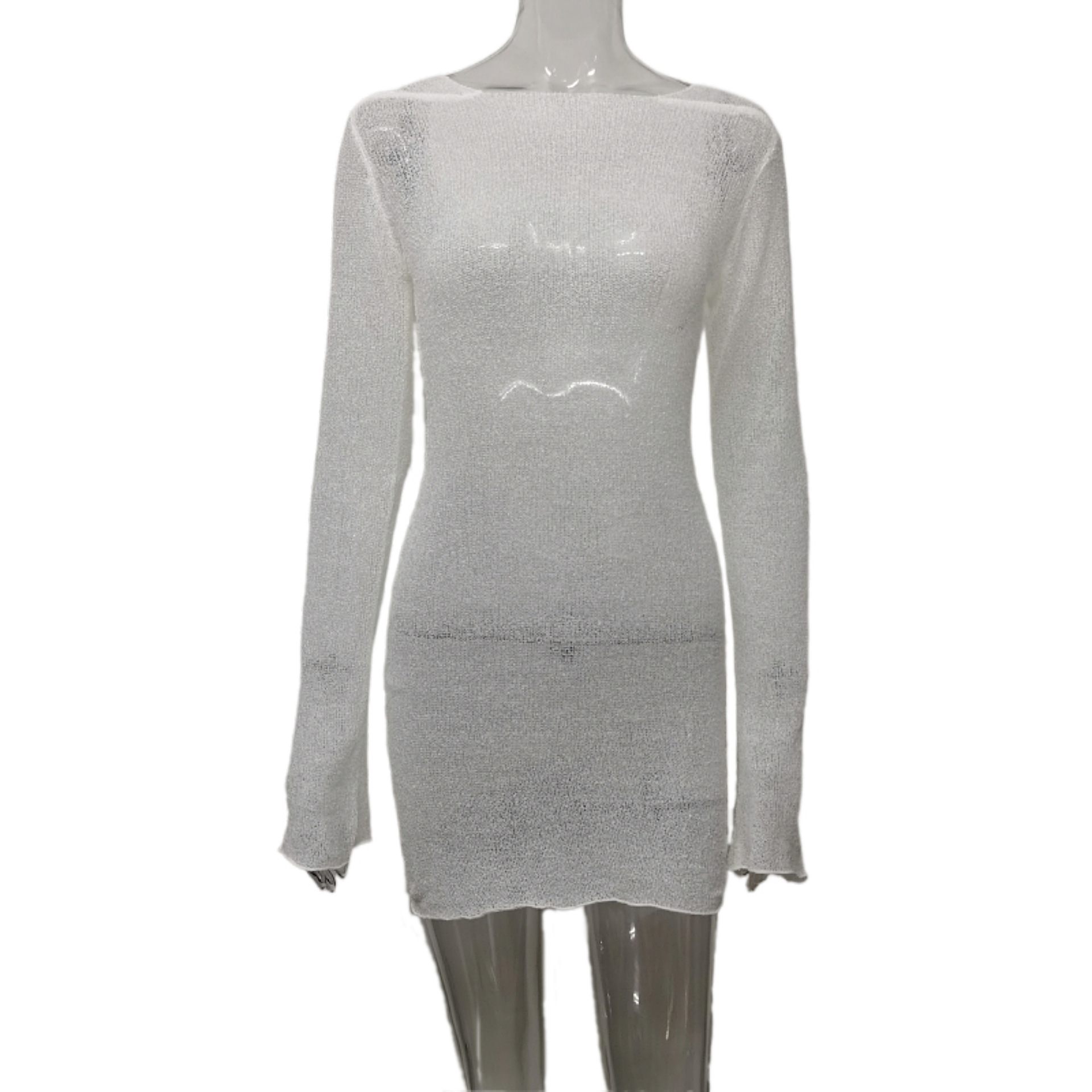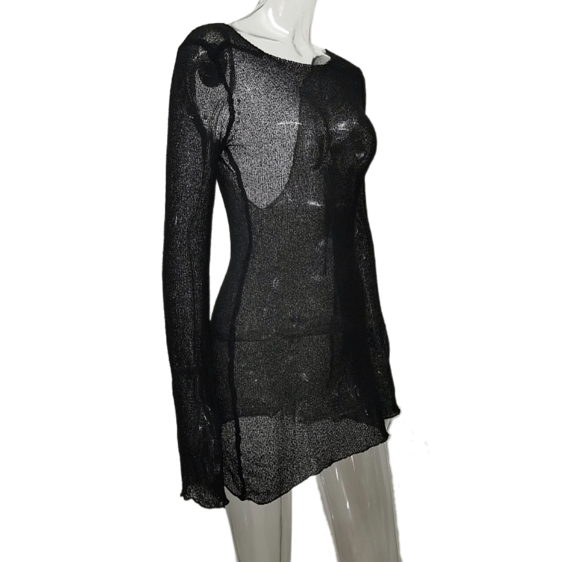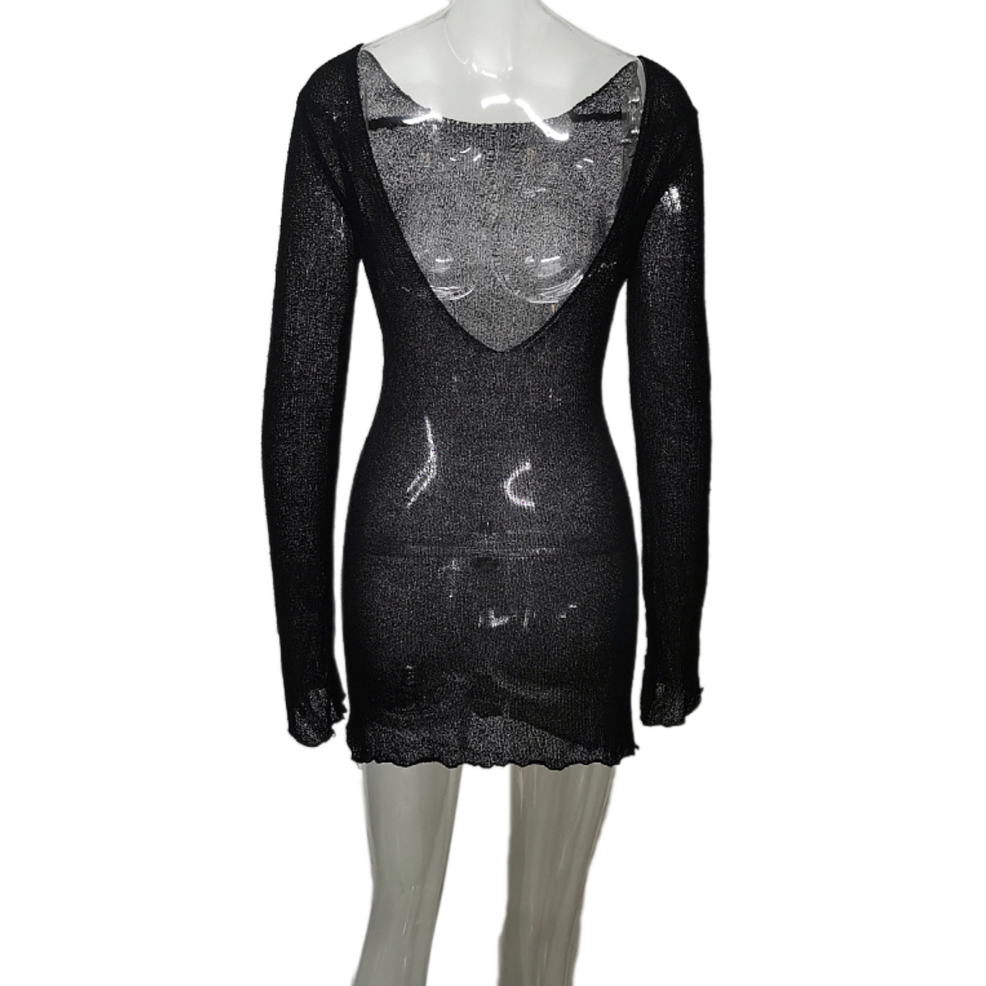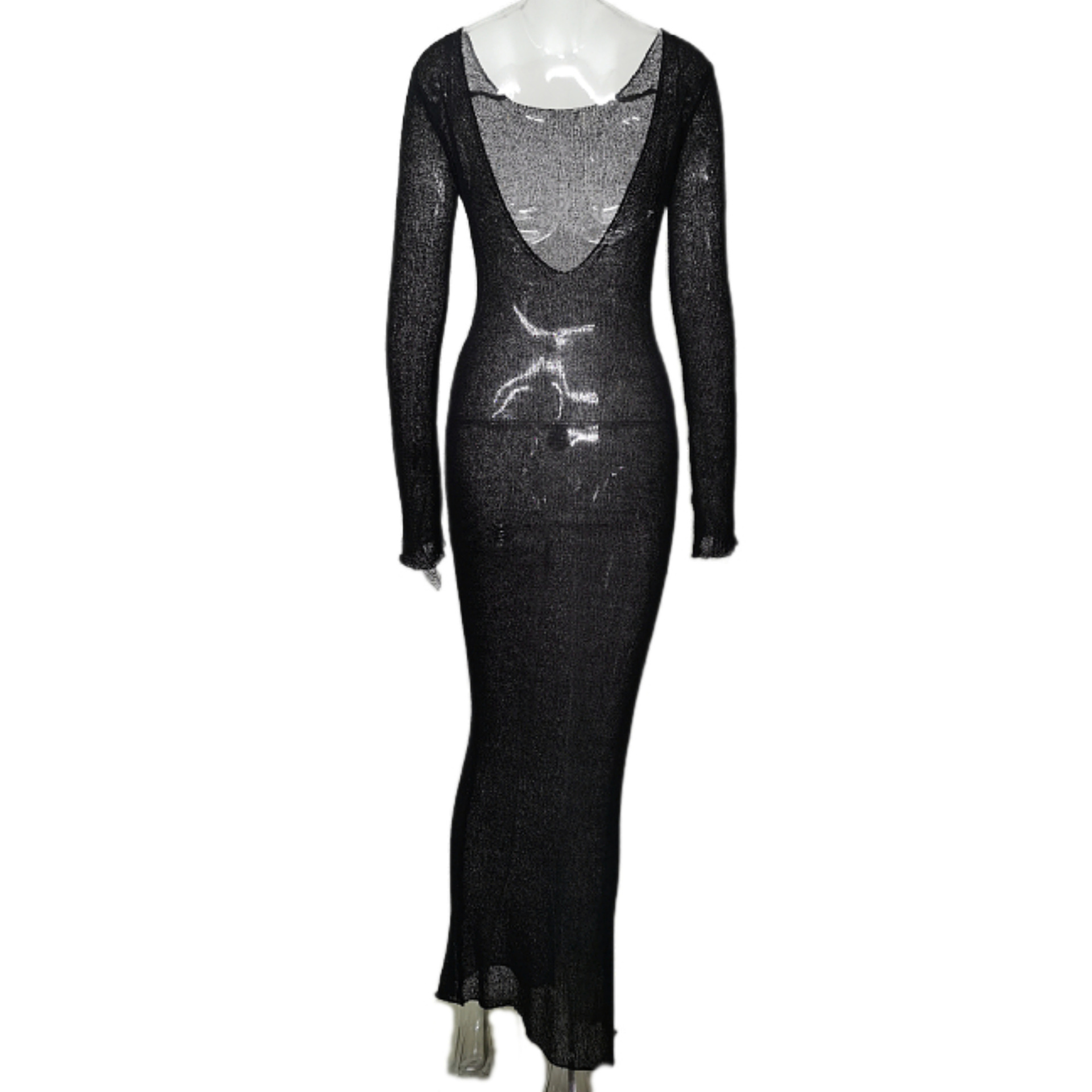 Black Knitted Beach Dress Sexy Backless See Through Slim Maxi Dress Summer Elegant Long Sleeve Holidays Club Party Beachwear