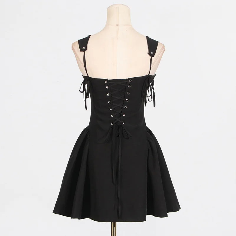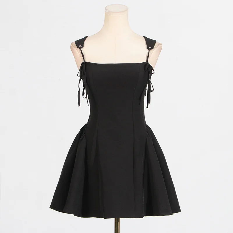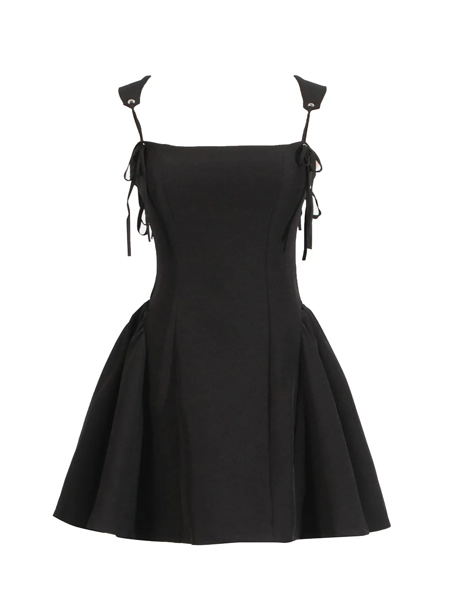 Black Y2K Retro A-line Short Dress Summer Bandage Elegant Chic Slip Women Dress 2025 New Fashion Square Collar Party Dresses