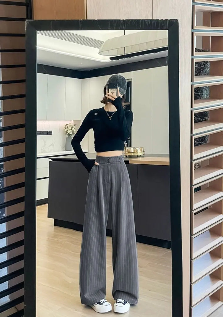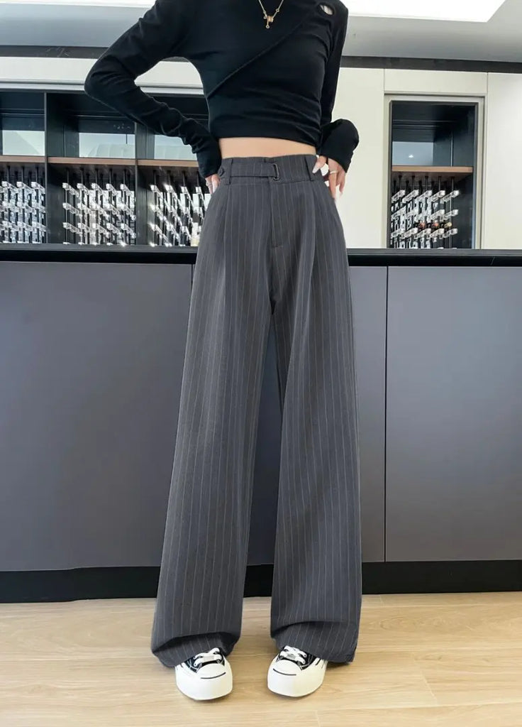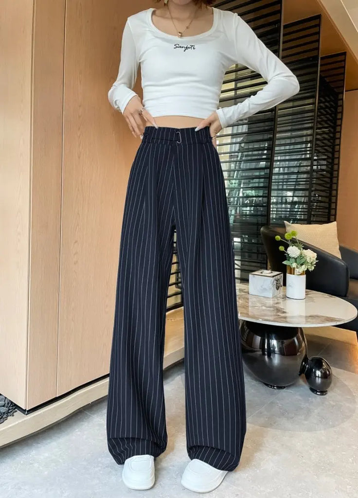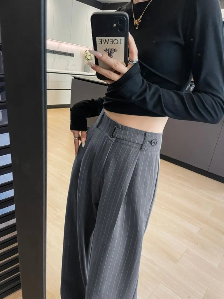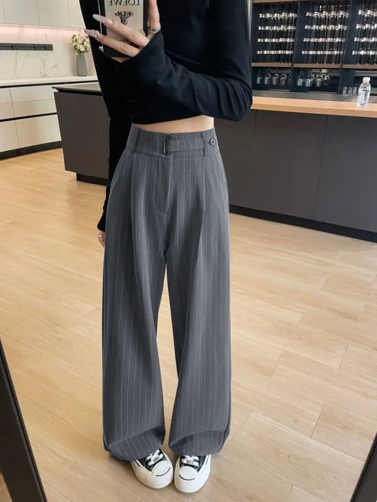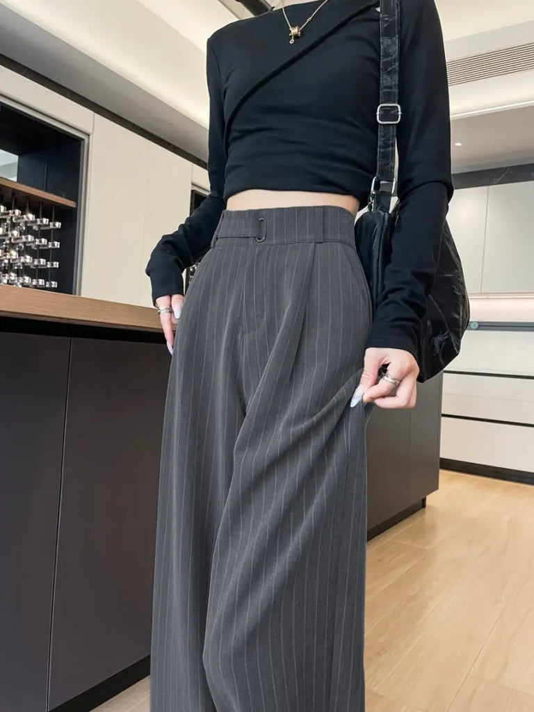Botvotee 2025 New Women's Luxury Stripe Wide Leg Pants High Waist Flowy Dress Trousers Elegant Office Pants Fall Winter Fashion