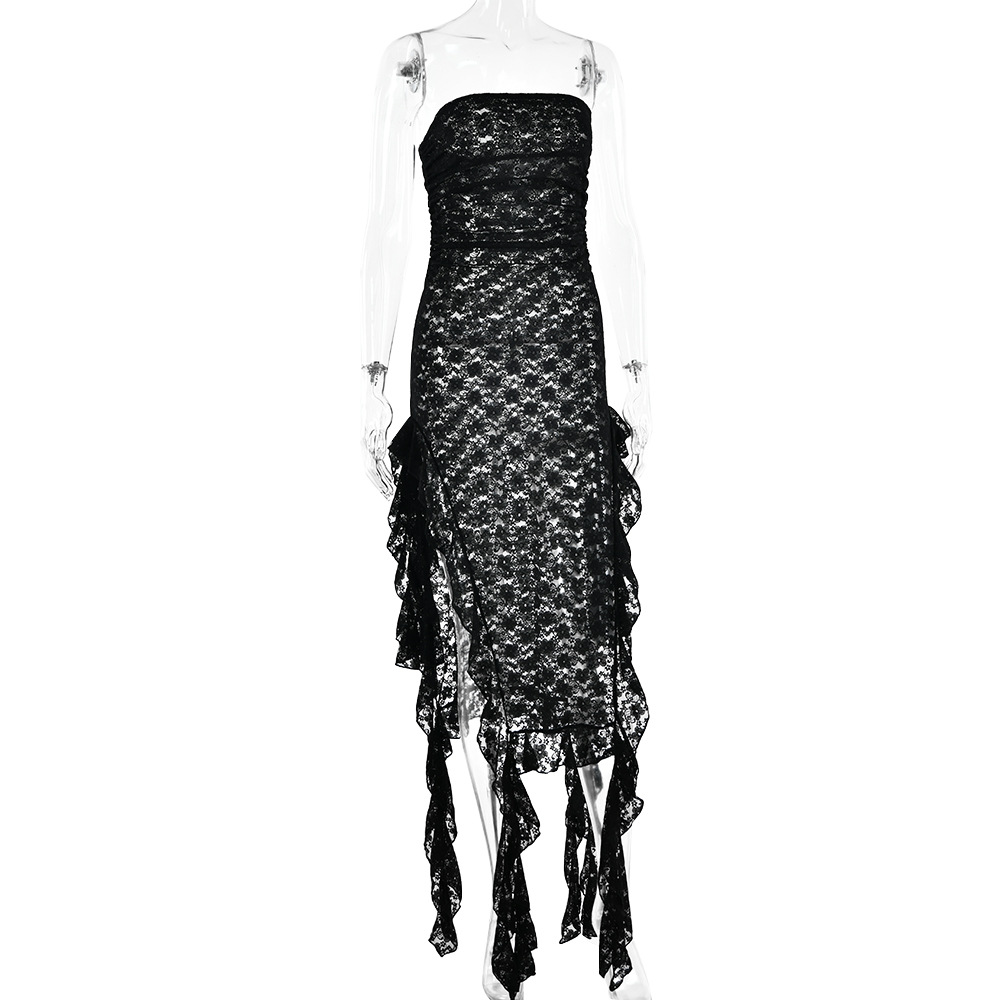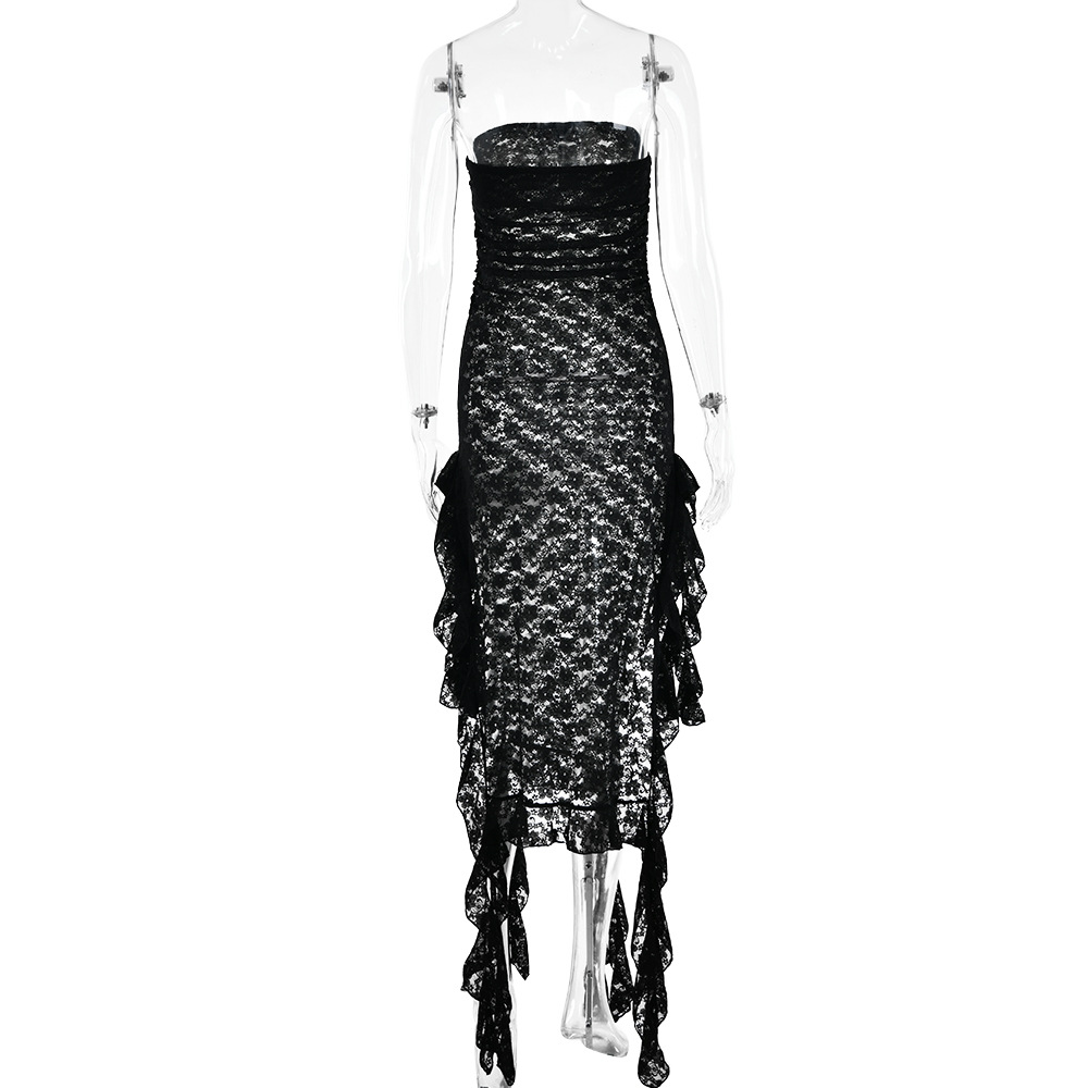 Elegant Ruffles Maxi Dress Summer Sexy Straps Sleeveless Ruched Evening Party Dresses for Women Backless Club Outfits