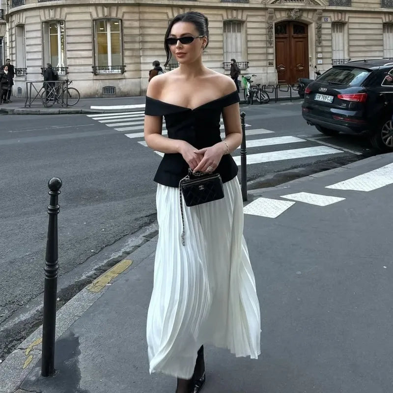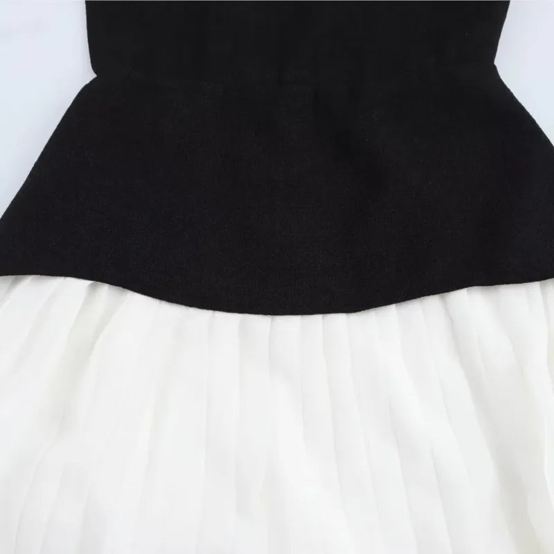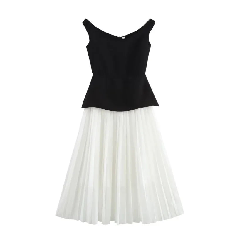 Elegant V-neck Women Long Dress White Black Patchwork A-line Fashion Party Dress New Sleeveless Summer Female Clothes