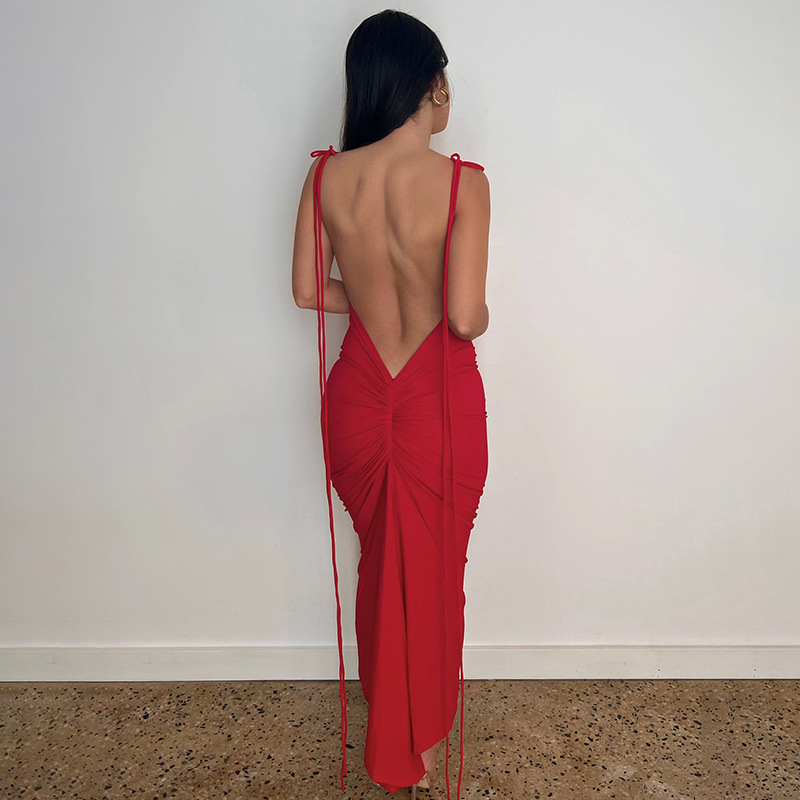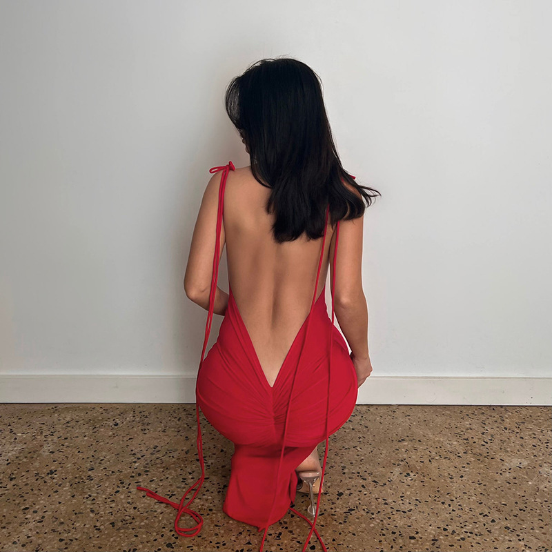 Green Backless Maxi Dress Elegant Halter Ruched Evening Party Dresses for Women Summer Sleeveless Slim Long Club Outfits