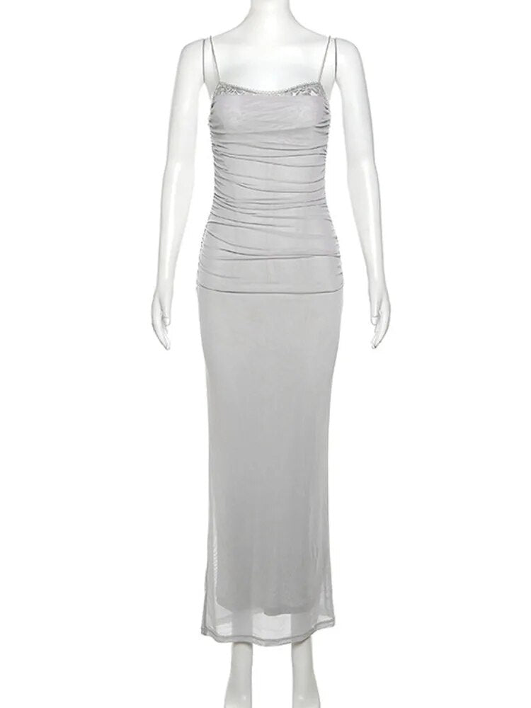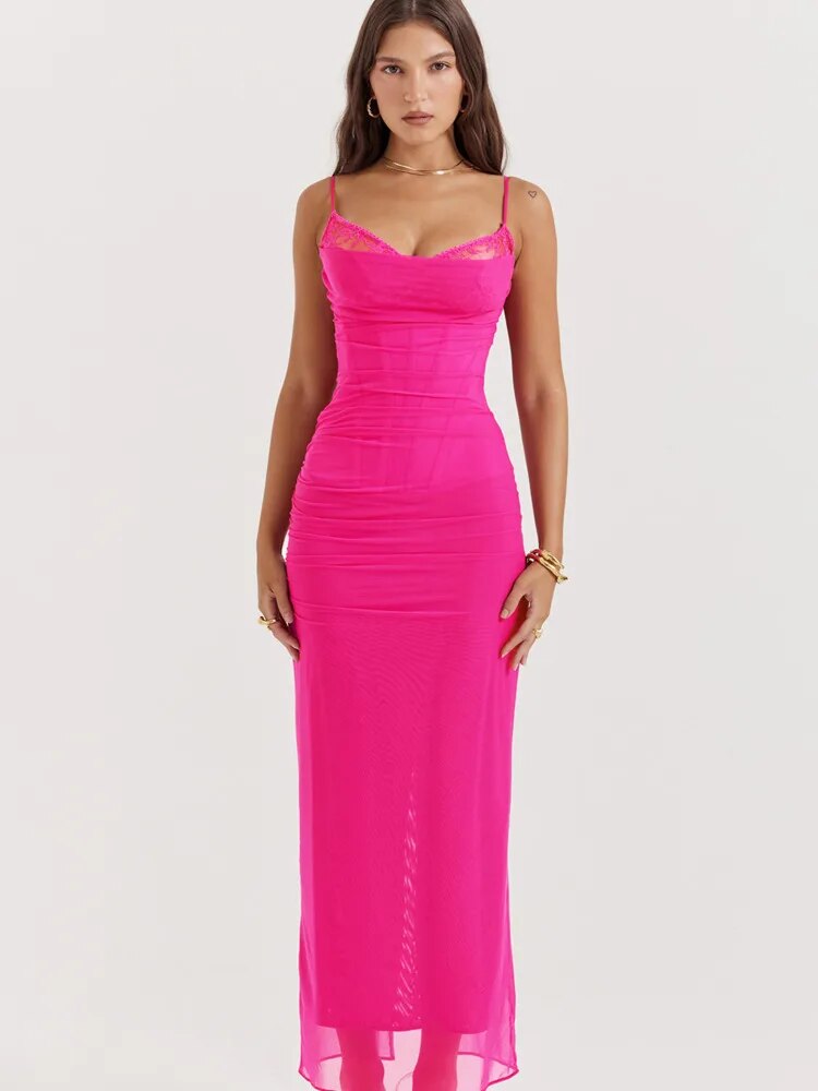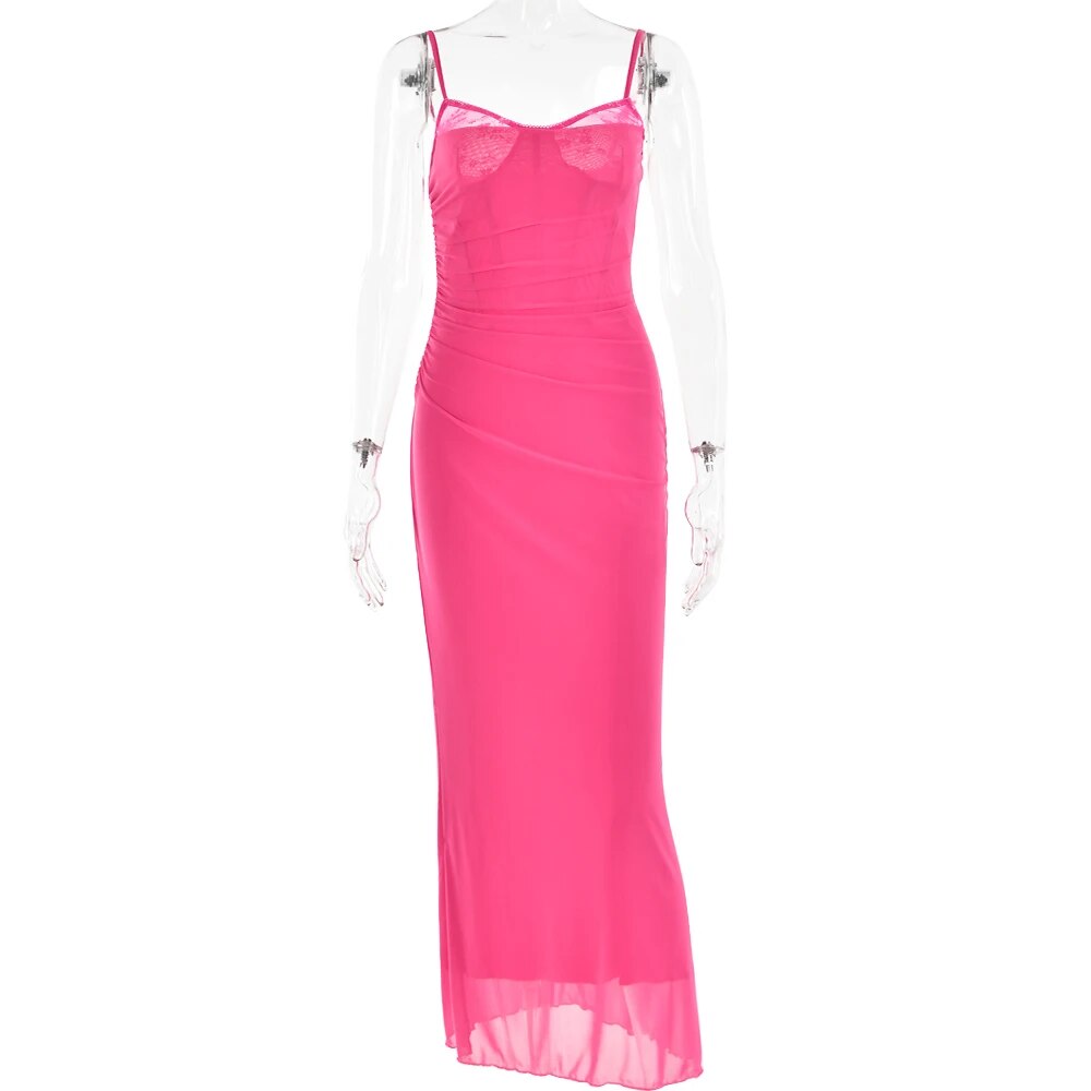 New Elegant Lace Mesh Patchwork Slip Backless Long Dress Women Fashion Autumn Slim Sexy Evening Dress Party Club