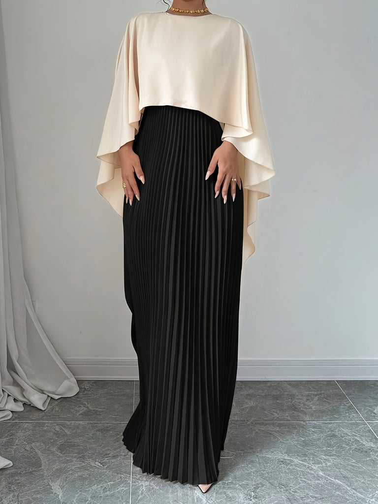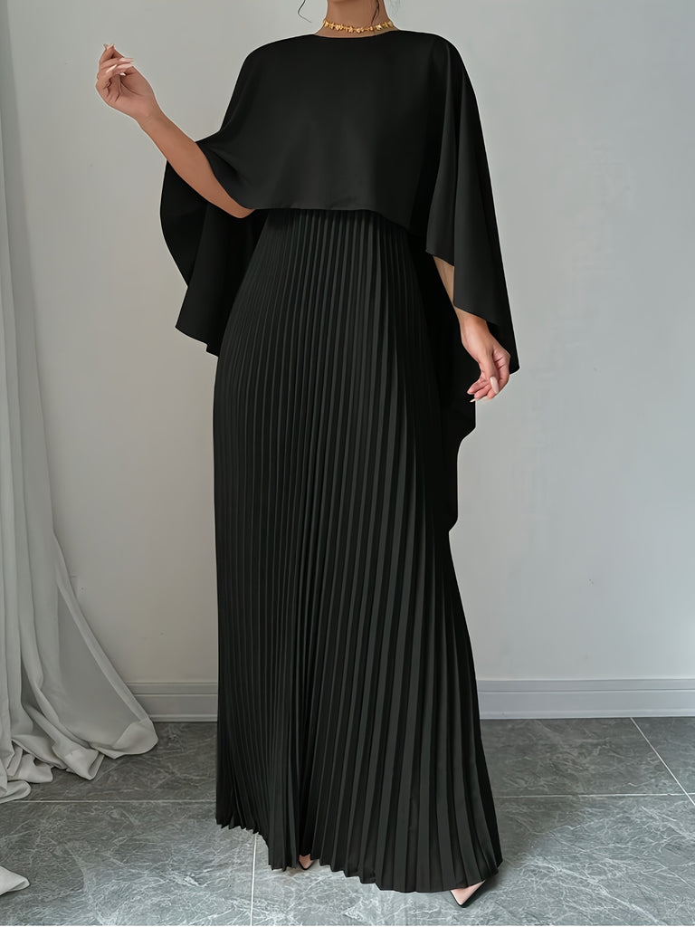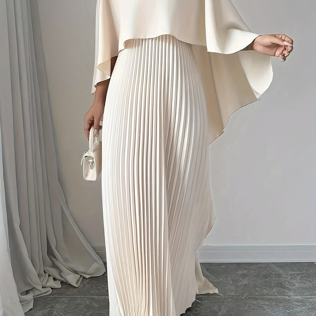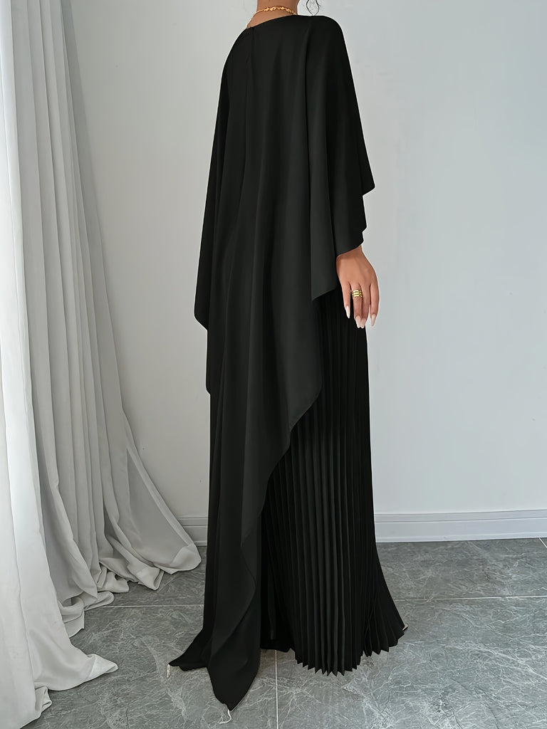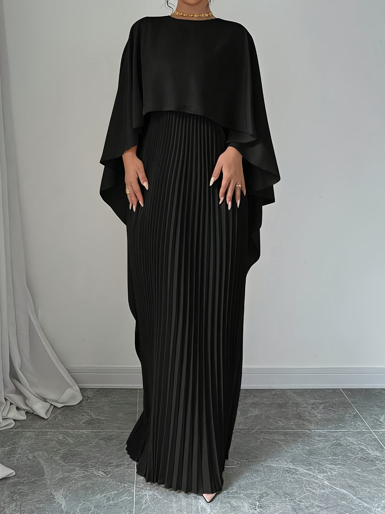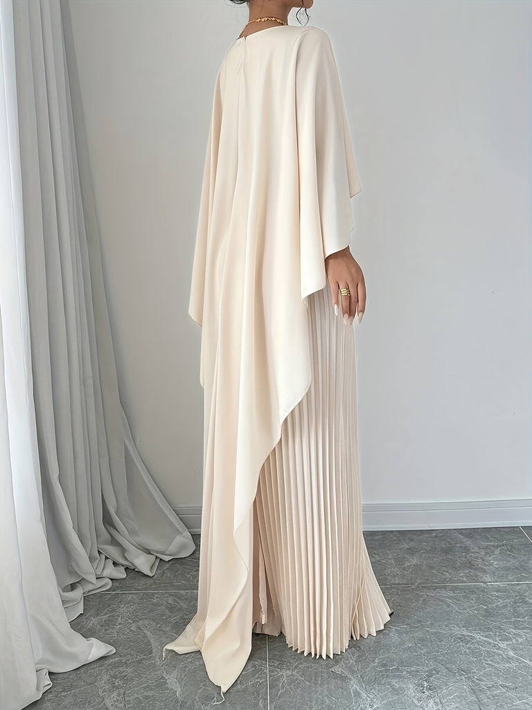 Pleated Non-Stretch Polyester Elegant Solid Color Dress - Integrated Cape Shawl, Machine Washable, Perfect for All Seasons - Middle East Special Project Style