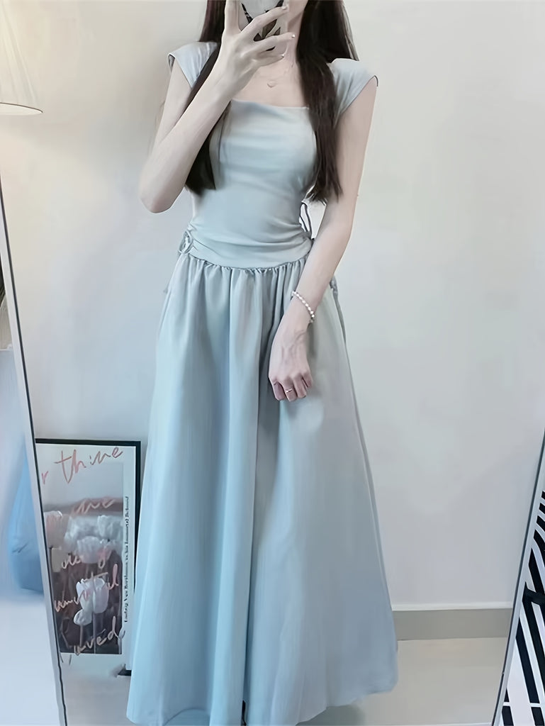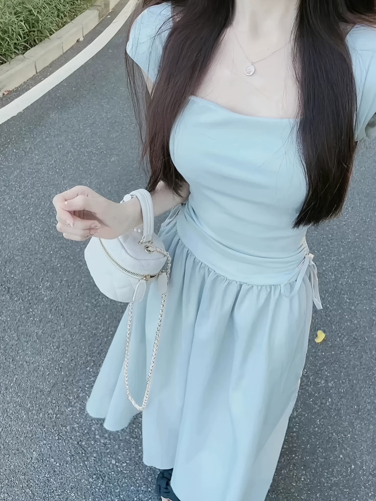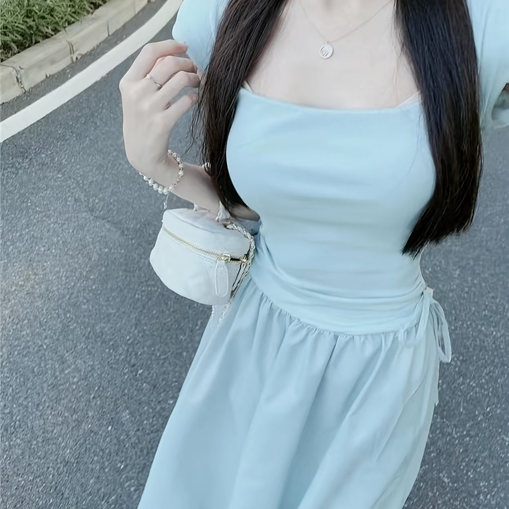[Summer Fashion Ruffled Blouse Dress] Women's Polyester Blouse Dress With Ruffled Trim, Young And Elegant Design, Adjustable Waist, Summer Fashion