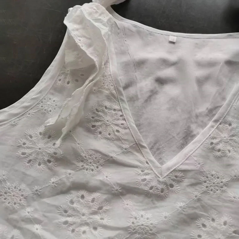 Women's Elegant White Mini Dresses Sexy V-Neck Eyelet Embroidery Tied Detail Sleeveless Dress Beach Fashion Summer Dress