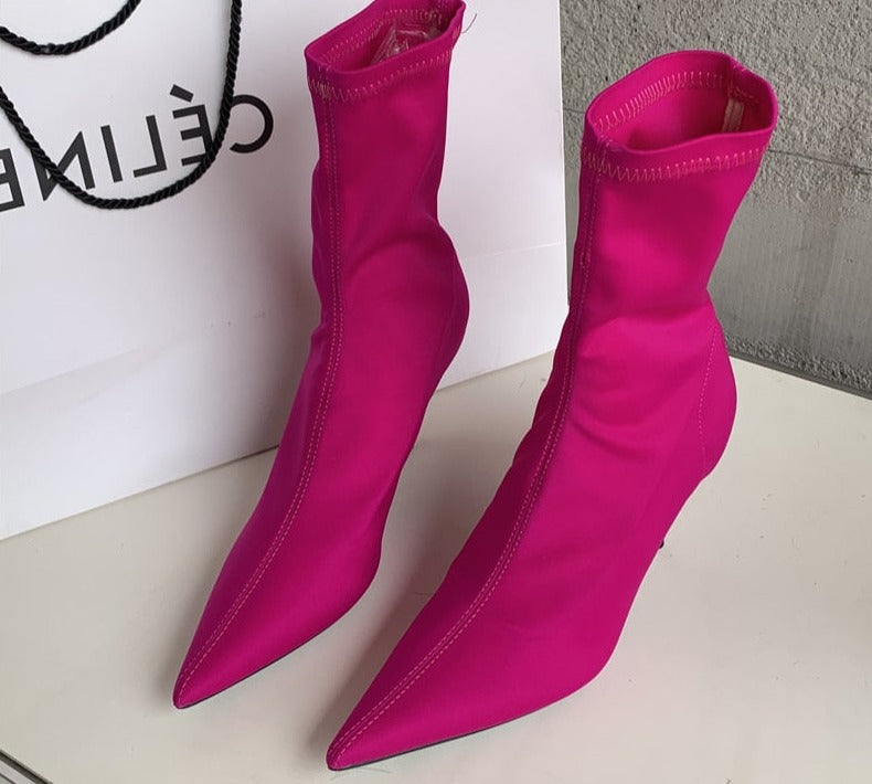 Spring Autumn Stretch Fabric Women Ankle Boots Sexy Pointed Toe High Heels Fashion Female Socks Pumps Shoes