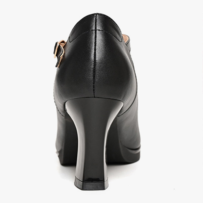Lucyever Ankle Strap Thick Heels Pumps for Women Pu Leather Office High Heel Shoes Woman Elegant Platform Mary Jane Shoes