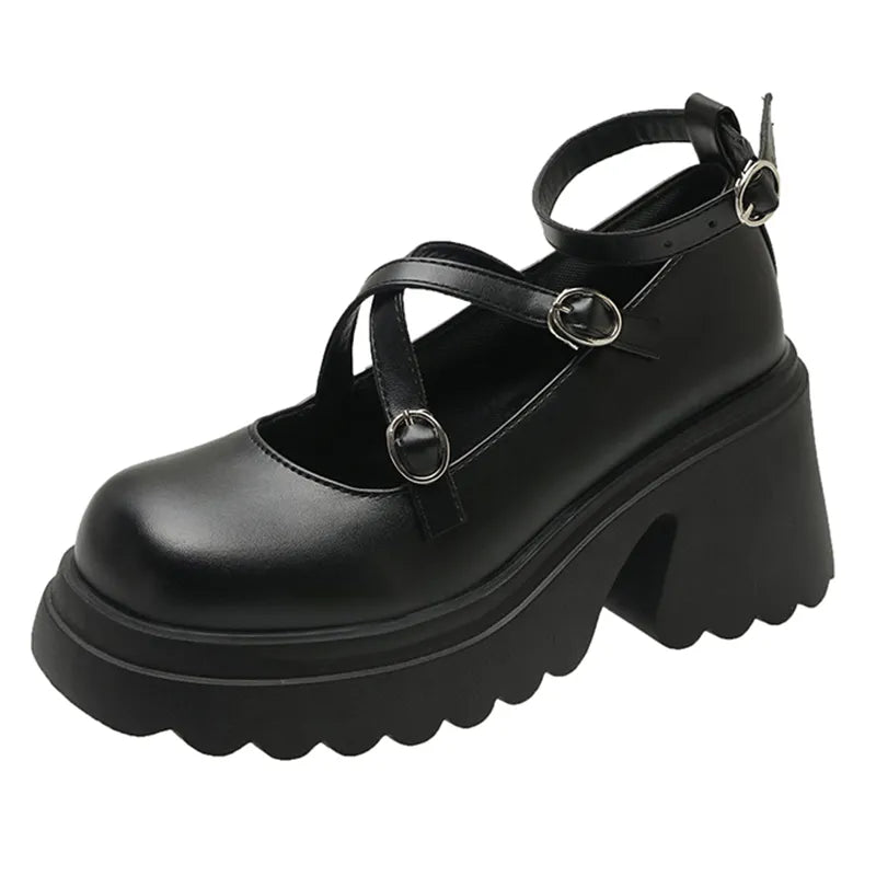 Shoes Type: Gothic pu leather shoes women/chunky platform Lolita Shoes