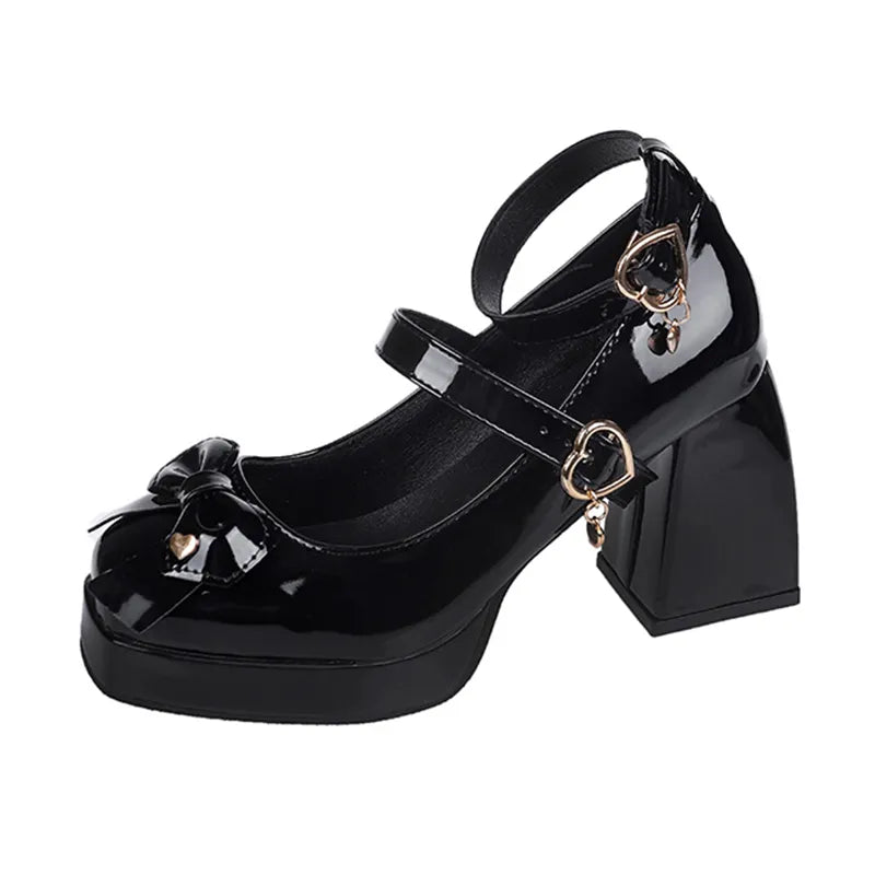 Punk Heart Buckle High Heels Pumps Women Autumn Y2K Black Chunky Platform Lolita Shoes Woman Bowtie Thick Heel Gothic Shoes