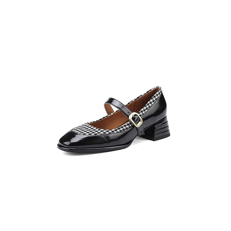 2022 Spring/Autumn Women Shoes Round Toe Chunky Heel Shoes Women Split Leather Women Pumps Concise Buckle High Heels Mary Janes