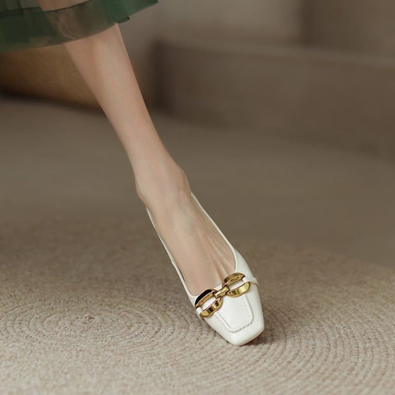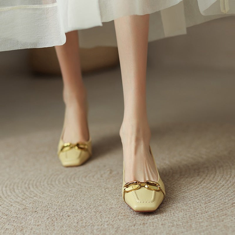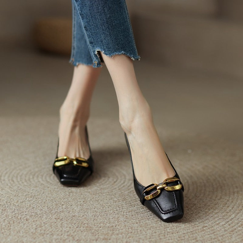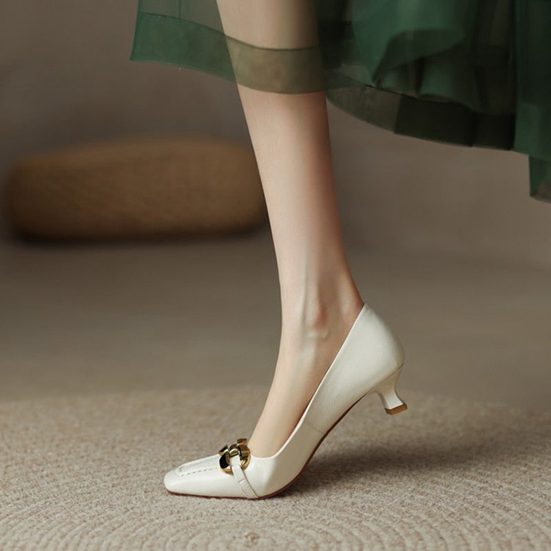 Spring/Summer Women's Pumps Split Leather High Heels Square Toe Thin Heel Women Shoes Metal Buckle Lady Shoes Party Shoes