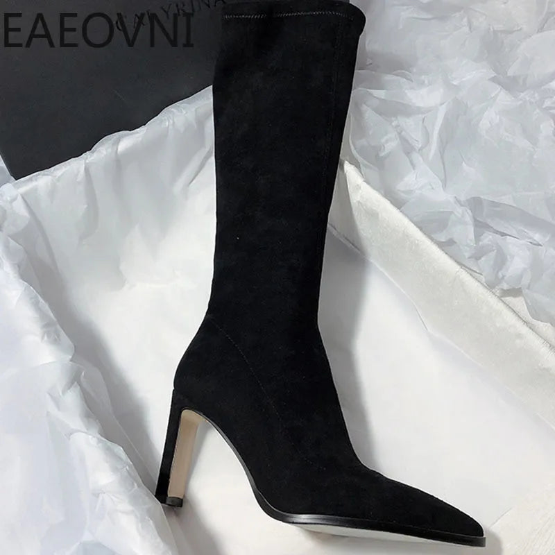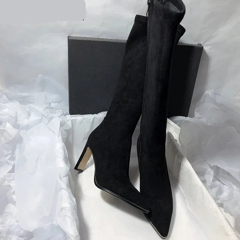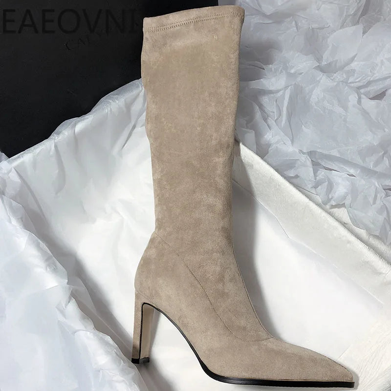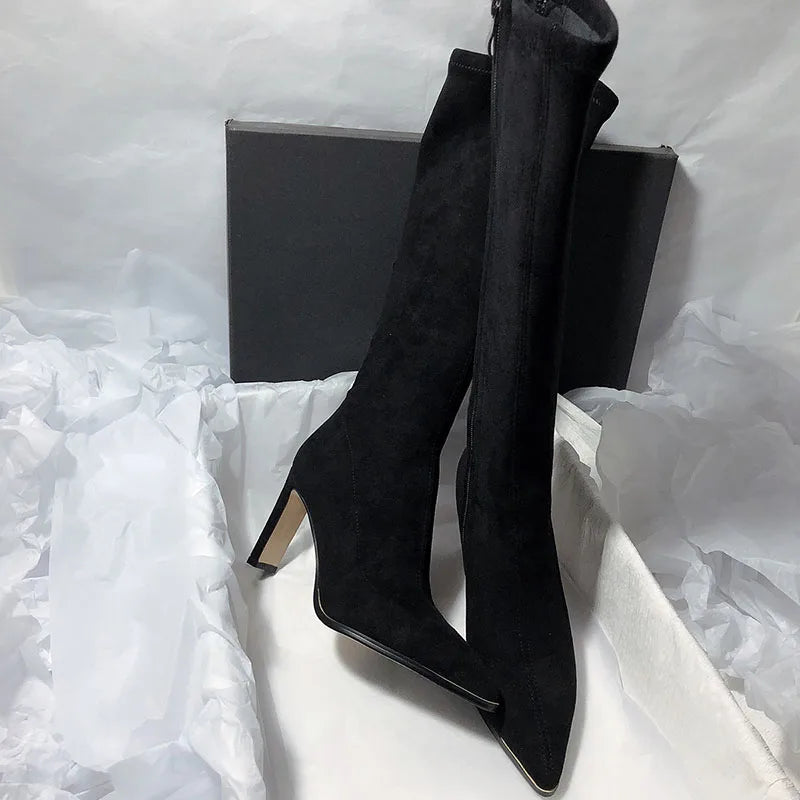 Winter Suede Long Boots Women Shoes Fashion Pointed Toe Knee High Bootties Ladies Sexy Thin High Heel Shoes