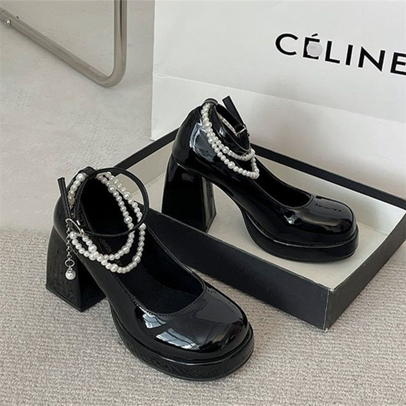 Woman Pumps Mary Jane Casual Shoes For Women High Heels Shoes Leather Elegant Square Toe Heeled Shoes Ladies Lolita Shoes