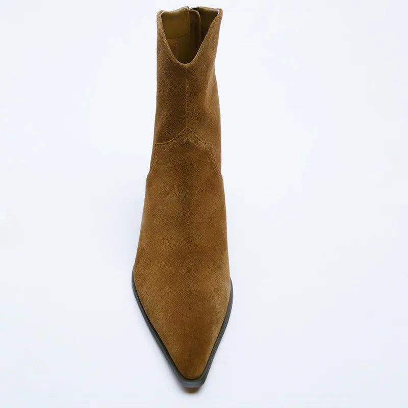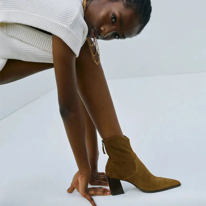 Women Boots High Heels Heeled Cowboy Ankle Boots Winter Fashion Pointed Toes Heel Women Chunky Heel Woman Shoes Brown