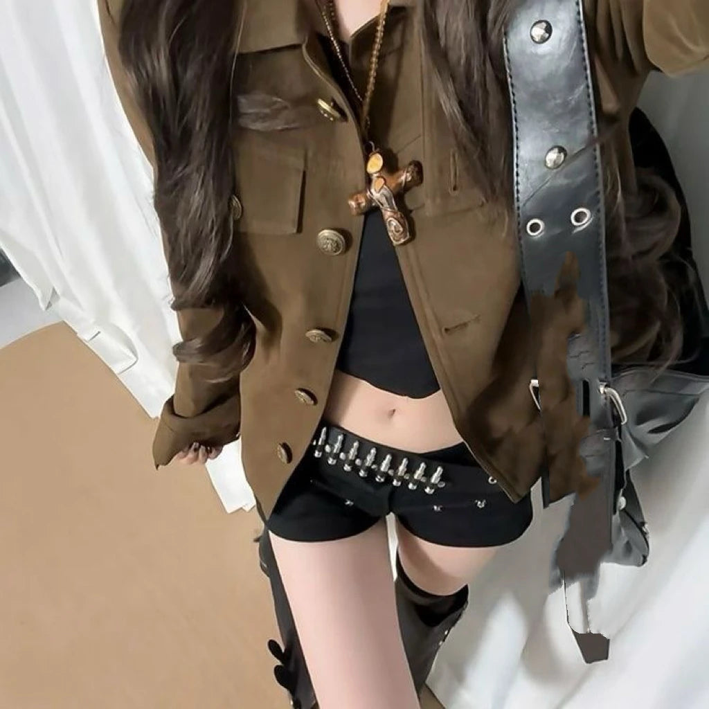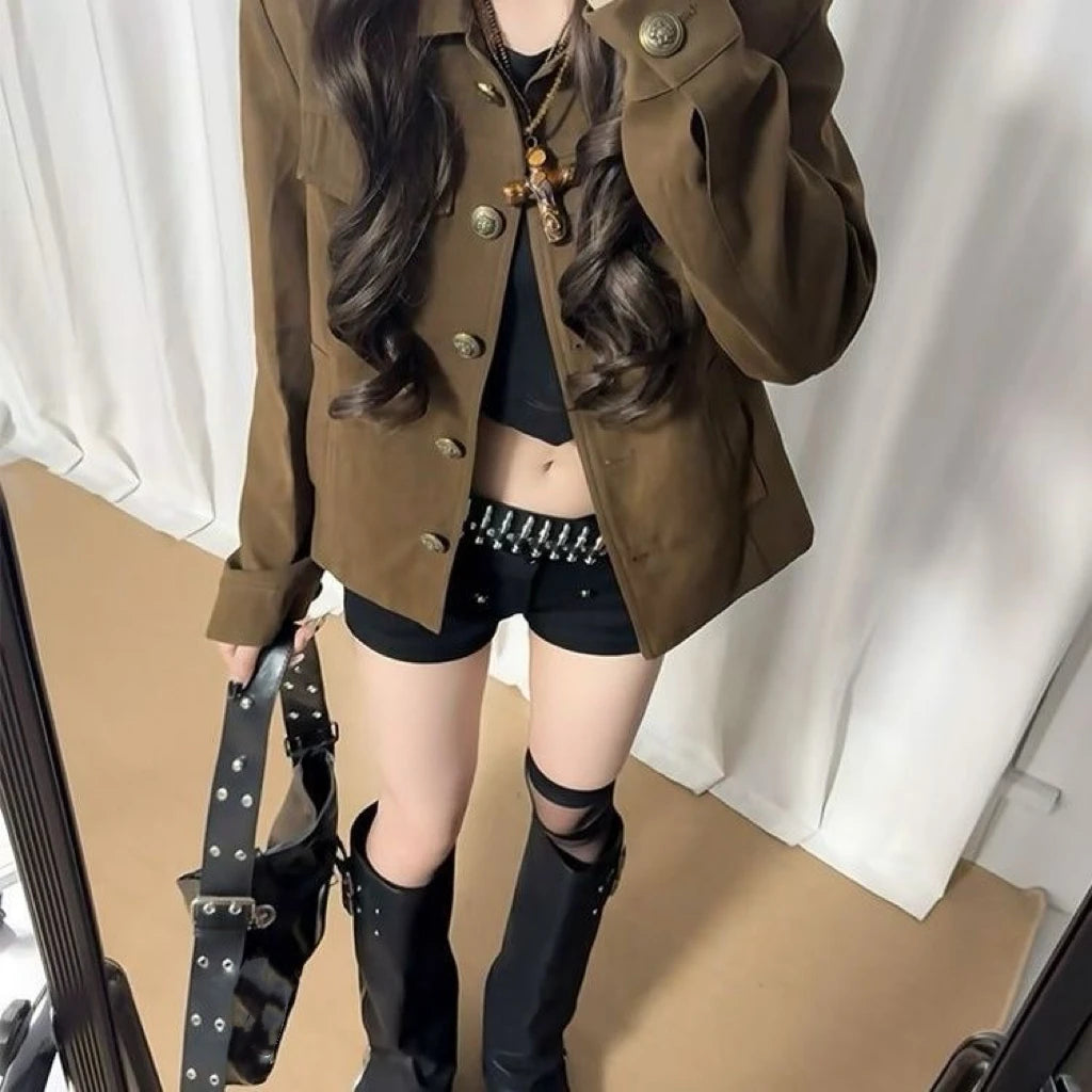 Women Jackets Stand Necl Print Single Breasted Outwear 2000s Ropa Mujer Casual Fashion Korean Coats Harajuku Y2k Tops
